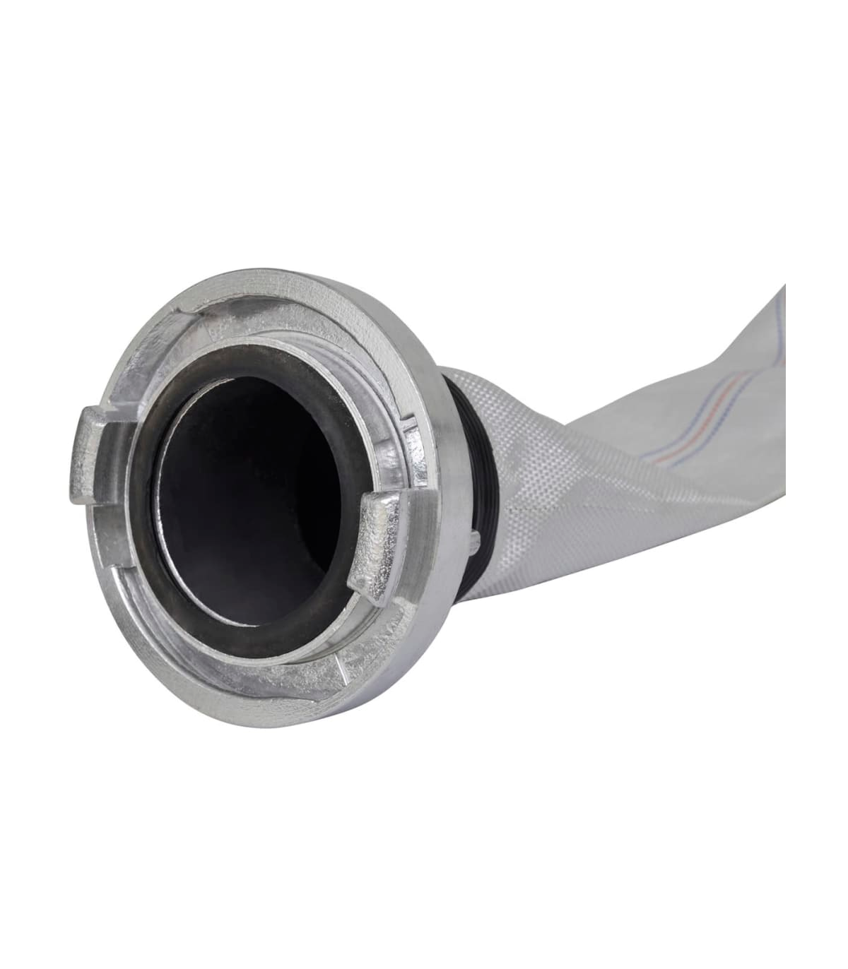 This practical fire hose is specially designed for use in the installation of water pumps and intended to transport water. Made of weather resistant material, the fire hose ensures a long service life and excellent durability. It also features smooth PVC lining – which prevents crushing and blocking of the hose and permits unrestricted flow of water. Made of solid aluminium alloy, the three-inch storz couplings can withstand 8 bar operating pressure. Thanks to the storz couplings on the two ends, the fire hose can either be connected to another hose to lengthen itself, or connected to the nozzle to increase the jet pressure of water. Moreover, the flat hose is light in weight and can roll up as coils for easy storage and transportation. Note: This fire hose is not designed for professional firefighters or to be used in fixed firefighting system.