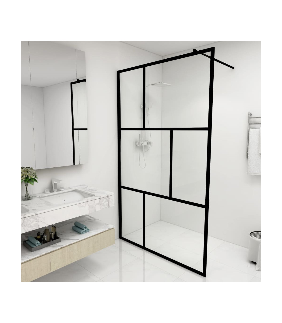 Bring a fresh appearance of aesthetics to your bathroom with this modern walk-in shower wall with ESG glass! Premium material: The shower screen features 5 mm thick safety ESG glass and is supported by aluminium frame. So, you can be sure that the structure remains strong once mounted.Adjustable size: The adjustable profile and the flexible supporting bar make it easy to fit any bathroom size and layout.Easy to clean: The shower enclosure is easy to clean. All you need to do is wipe away those annoying water stains!