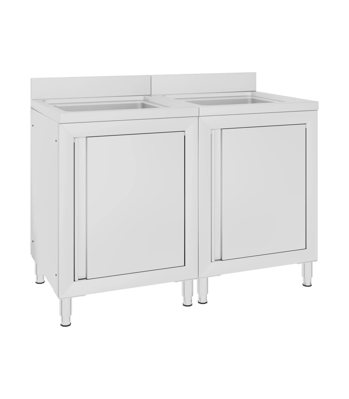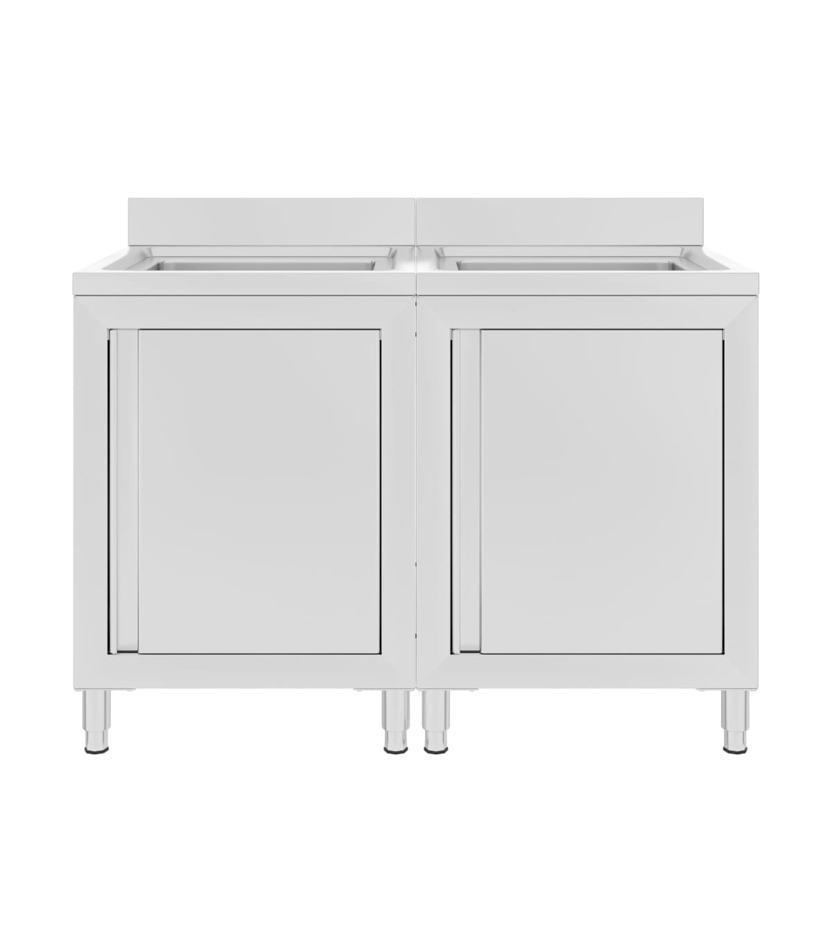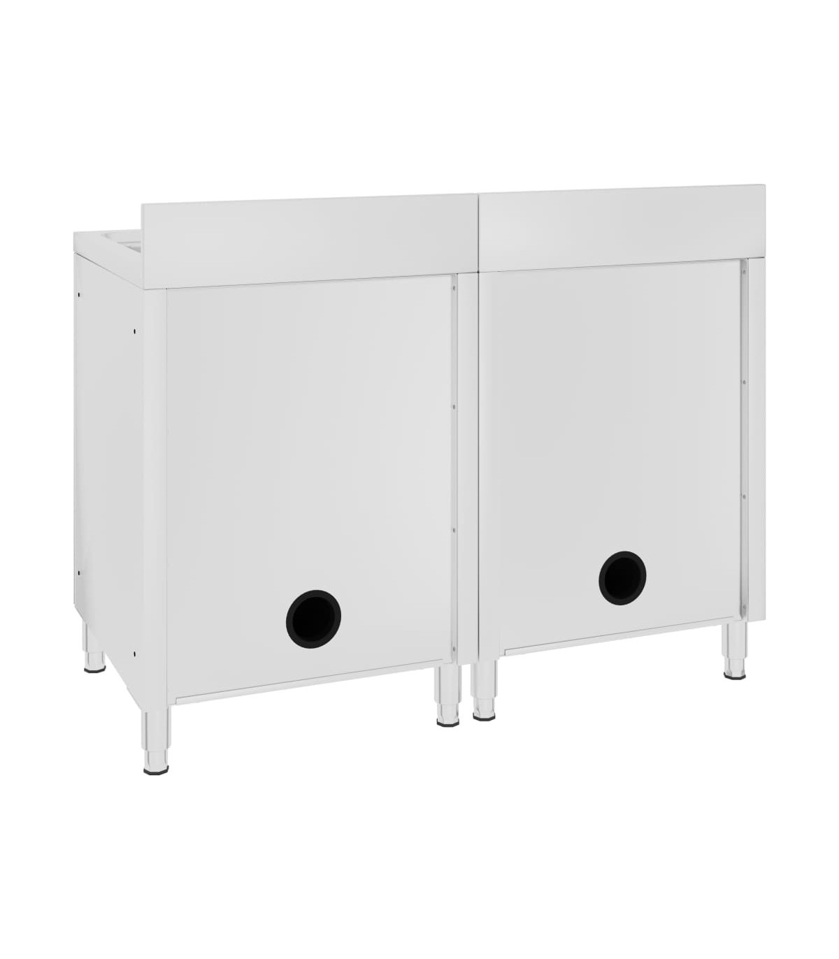 If you want to keep your kitchen spic and span, this commercial sink cabinet and drainboard cabinet set is a perfect choice for you. It can be widely used in restaurant, hotel, food production, gastronomy use or garage workplace and home use. Made of quality stainless steel, this cabinet set is robust, anti-corrosive and easy to clean. Bottom cabinet provides ample storage space for cleaning equipment and accessories. The drainboard top allows cutlery, plates and pots to drain water rather than leaving puddles on countertop. Adjustable feet keep the cabinet level on uneven floors. It includes a 10 cm backsplash and water pipe hole. You can find the commercial sink cabinet, drainboard cabinet and work table cabinet of 60x60x96 cm in our webshop. They can be connected with each other to meet your specific needs. Assembling accessories are included in delivery.