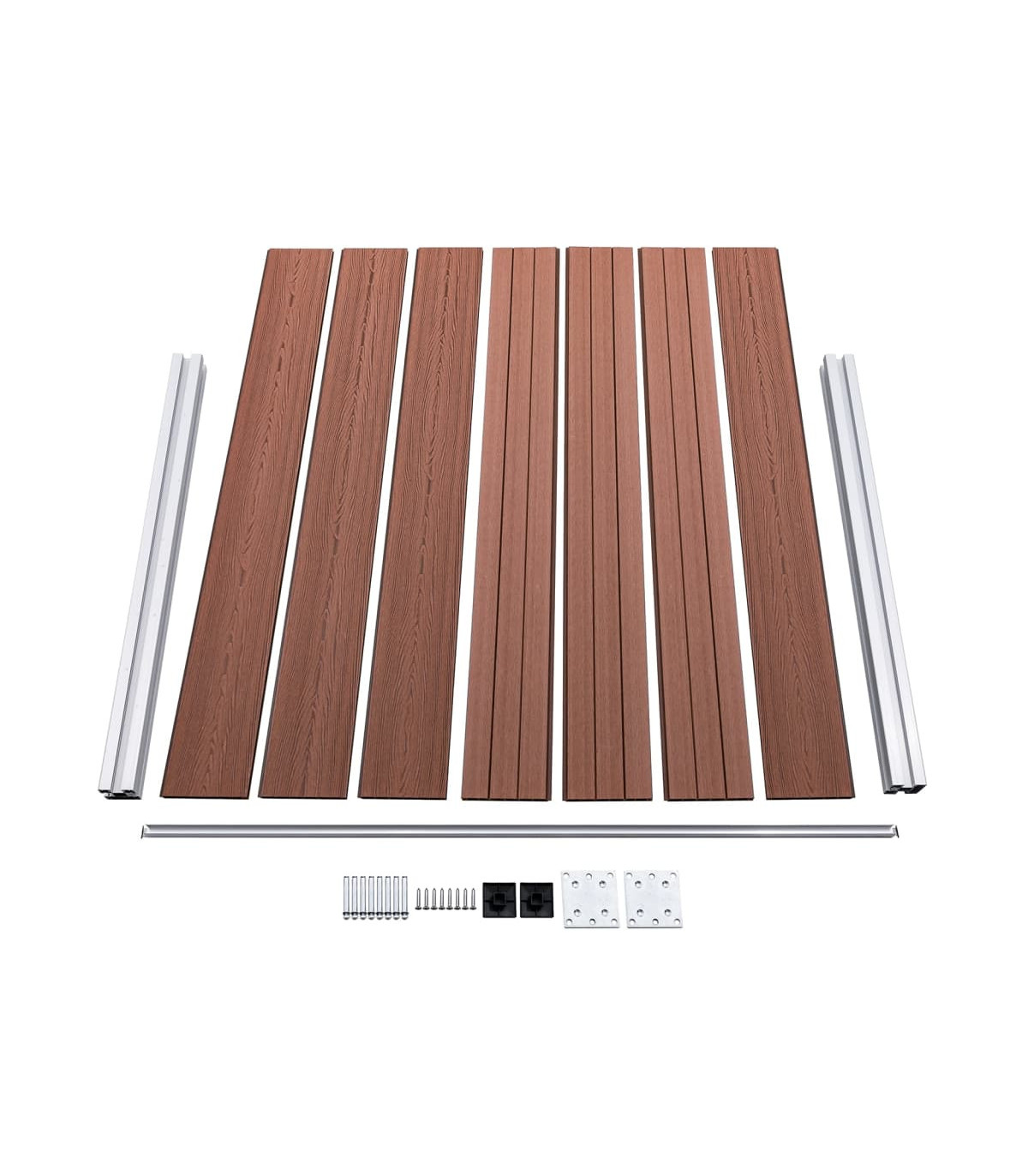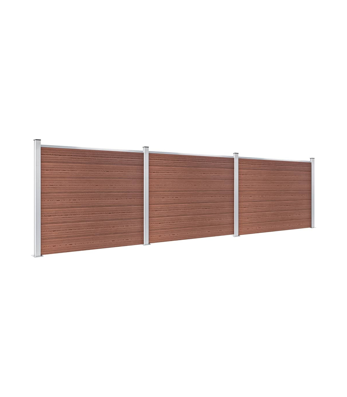 This fence panel can be used as garden barrier or residential fence for privacy and security. Made of WPC (wood-plastic composite), the garden fence is durable and resistant to rot or rust. The garden barrier has a wood grain print on one side and regular print on the other side, so you can choose the design you like best. Thanks to the aluminium top profile, the fence boards can be tightly attached to each other, which increases their rigidity and strength against impact. Designed with the modular system, the fence boards are easy to install and allow you to expand the fence freely. These posts feature three slots, which enable you to assemble the fence in various ways, for example, in a straight line (180 degrees), right angle (90 degrees) or "T"-shape. The multifunctional steel feet can be fixed in two ways. The first one is by screwing them onto a surface, using the supplied anchor screws. The second way is by anchoring them into a cement base, using the ground spike (not included).