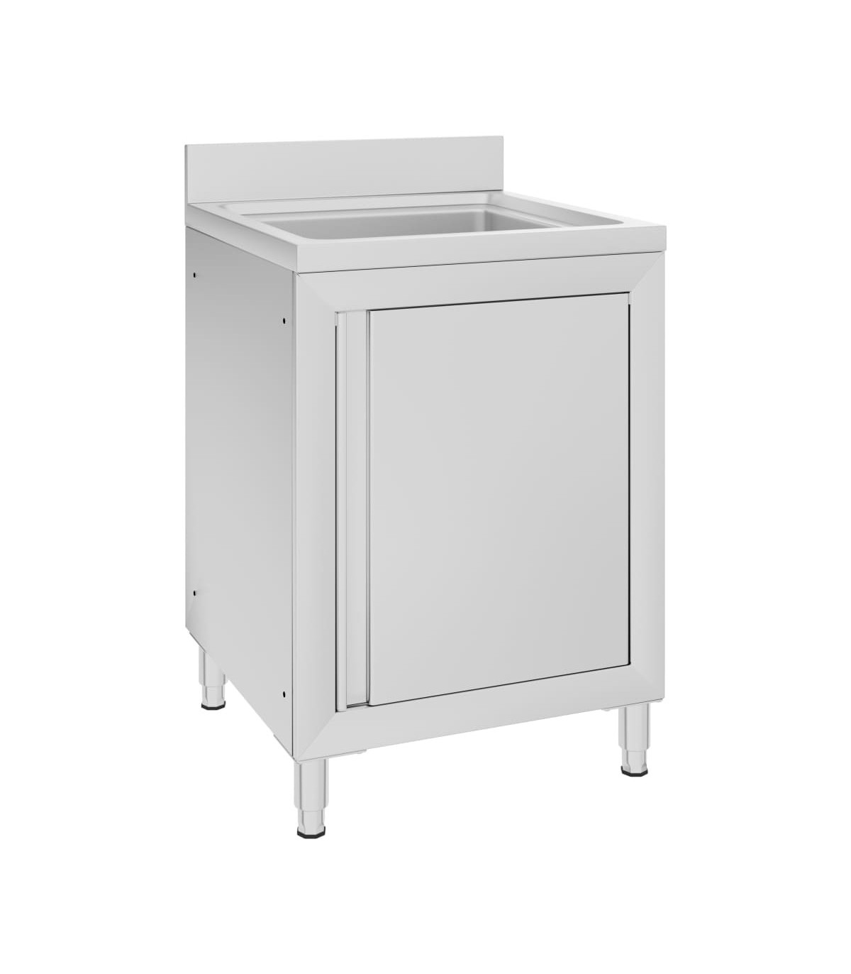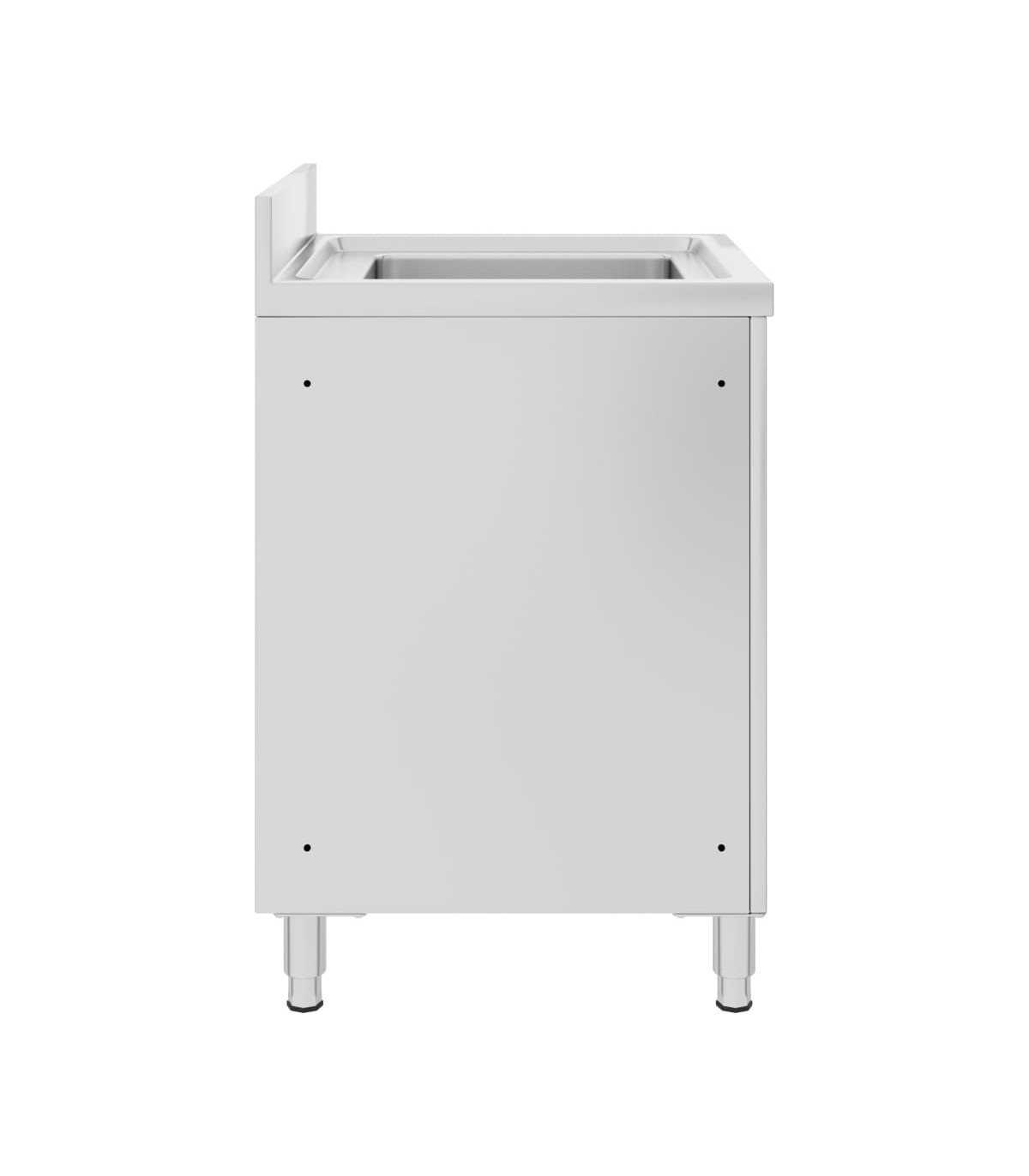 If you want to keep your kitchen spic and span, this commercial sink cabinet and drainboard cabinet set is a perfect choice for you. It can be widely used in restaurant, hotel, food production, gastronomy use or garage workplace and home use. Made of quality stainless steel, this cabinet set is robust, anti-corrosive and easy to clean. Bottom cabinet provides ample storage space for cleaning equipment and accessories. The drainboard top allows cutlery, plates and pots to drain water rather than leaving puddles on countertop. Adjustable feet keep the cabinet level on uneven floors. It includes a 10 cm backsplash and water pipe hole. You can find the commercial sink cabinet, drainboard cabinet and work table cabinet of 60x60x96 cm in our webshop. They can be connected with each other to meet your specific needs. Assembling accessories are included in delivery.