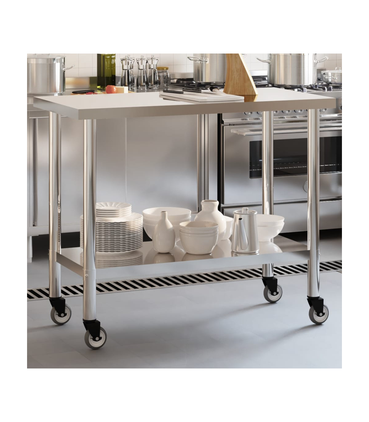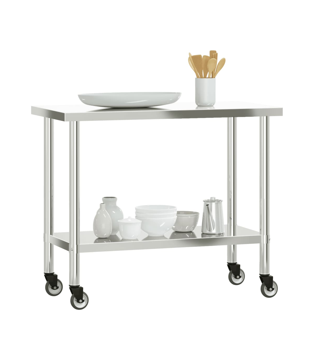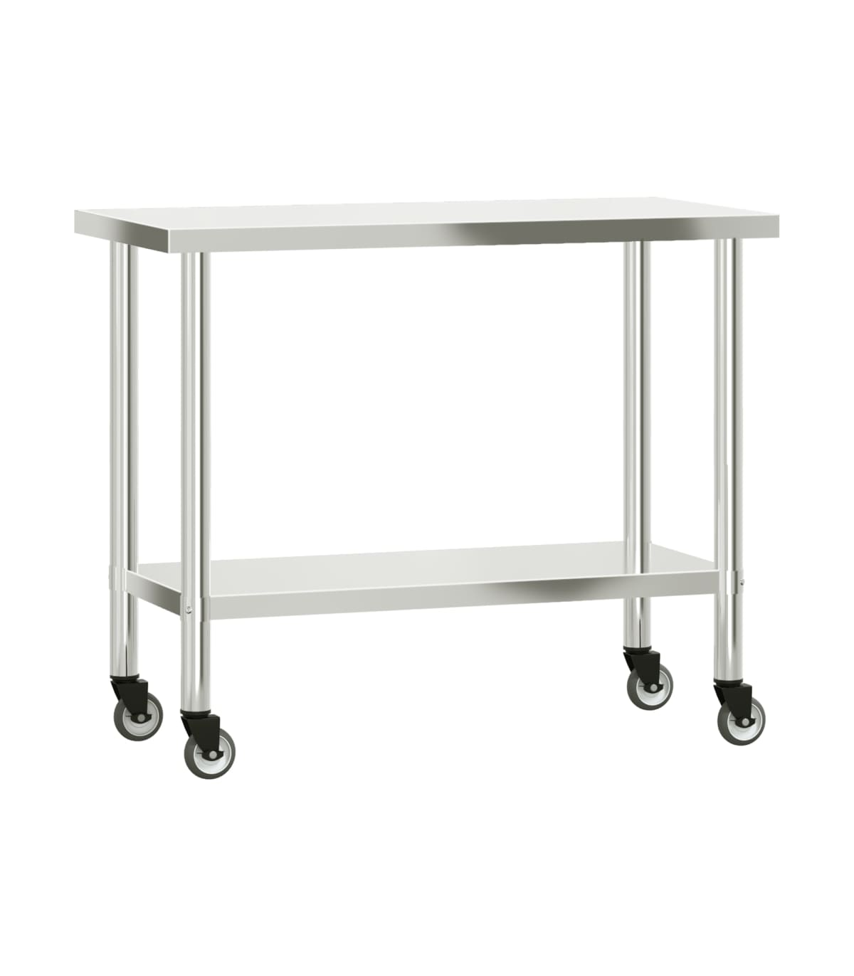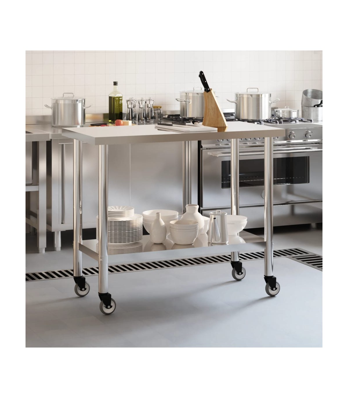vidaXL Kitchen Work Table with Wheels 110x55x85 cm Stainless Steel