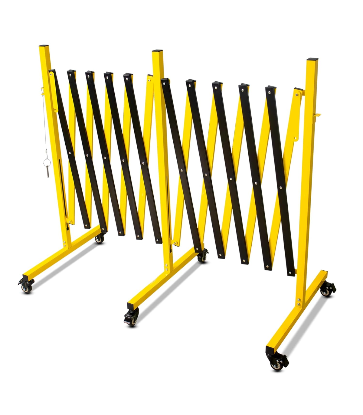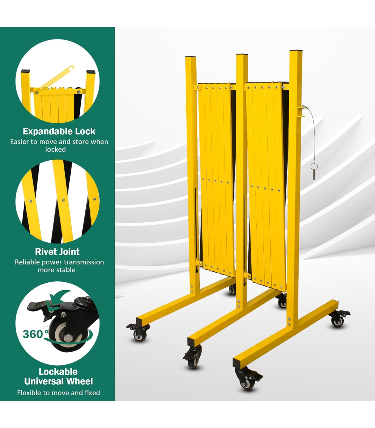 Metal Expandable Barricade, 17 Feet Retractable Fence Outdoor, Mobile Safety Barrier Gate, Easily Assembled Expanding Gate with Casters, Collapsible Accordion Barricade Gate Outdoor