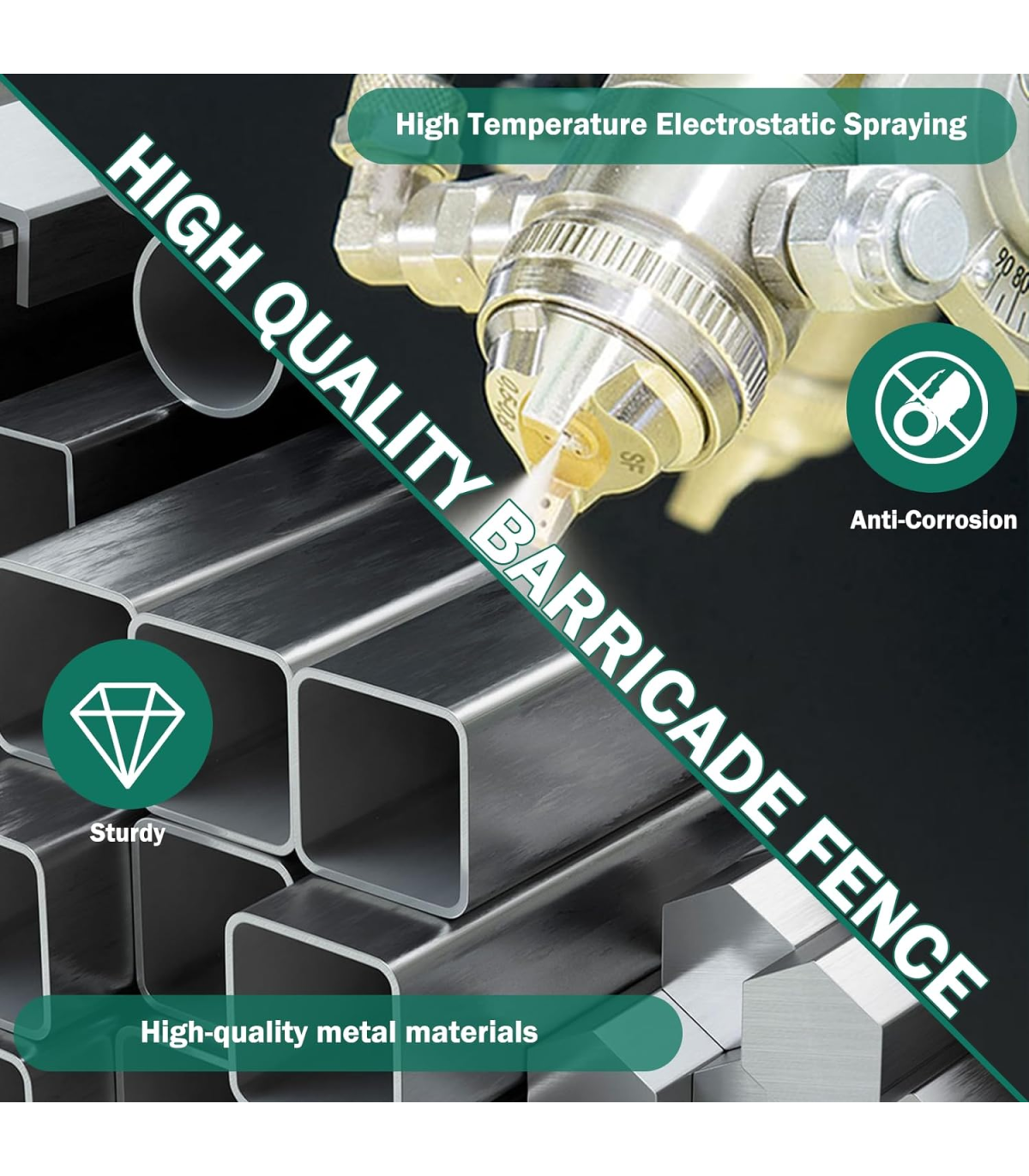 - 【High Stability & Flexibility】With a scissor design, the folding security gate outdoor can be freely expanded, the bottom of the expandable safety gate is equipped with 360-degree rotating wheels and adjustable feets that can be adjusted against the rugged ground, maintaining the balance. Universal wheels are design for moving easily, and there is a locking function to keep the expandable fence gate in place.