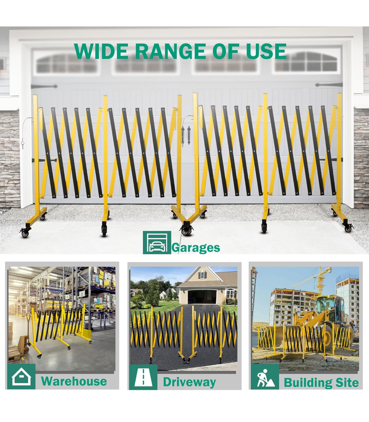 - 【Bright Colors Expandable Gate】 The driveway guard retractable fence is often used as a reminder to keep away from dangerous area. Our barricade is designed in yellow and black, using the clash of color to better draw attention to people and being clearly visible even in dim areas. So the outdoor expandable gate can be quickly pulled open to create a protected area in an unexpected situation.