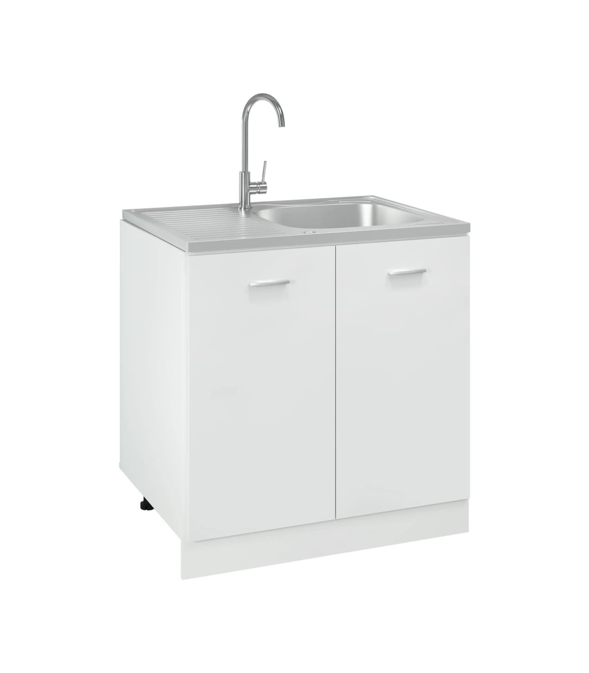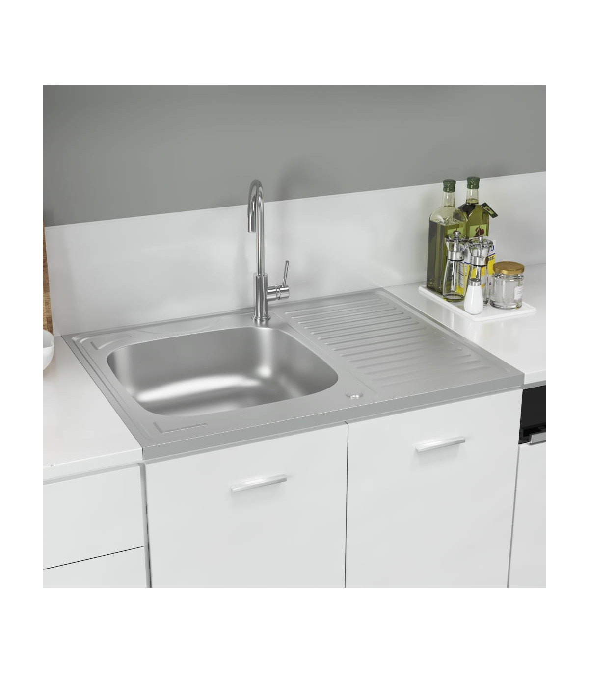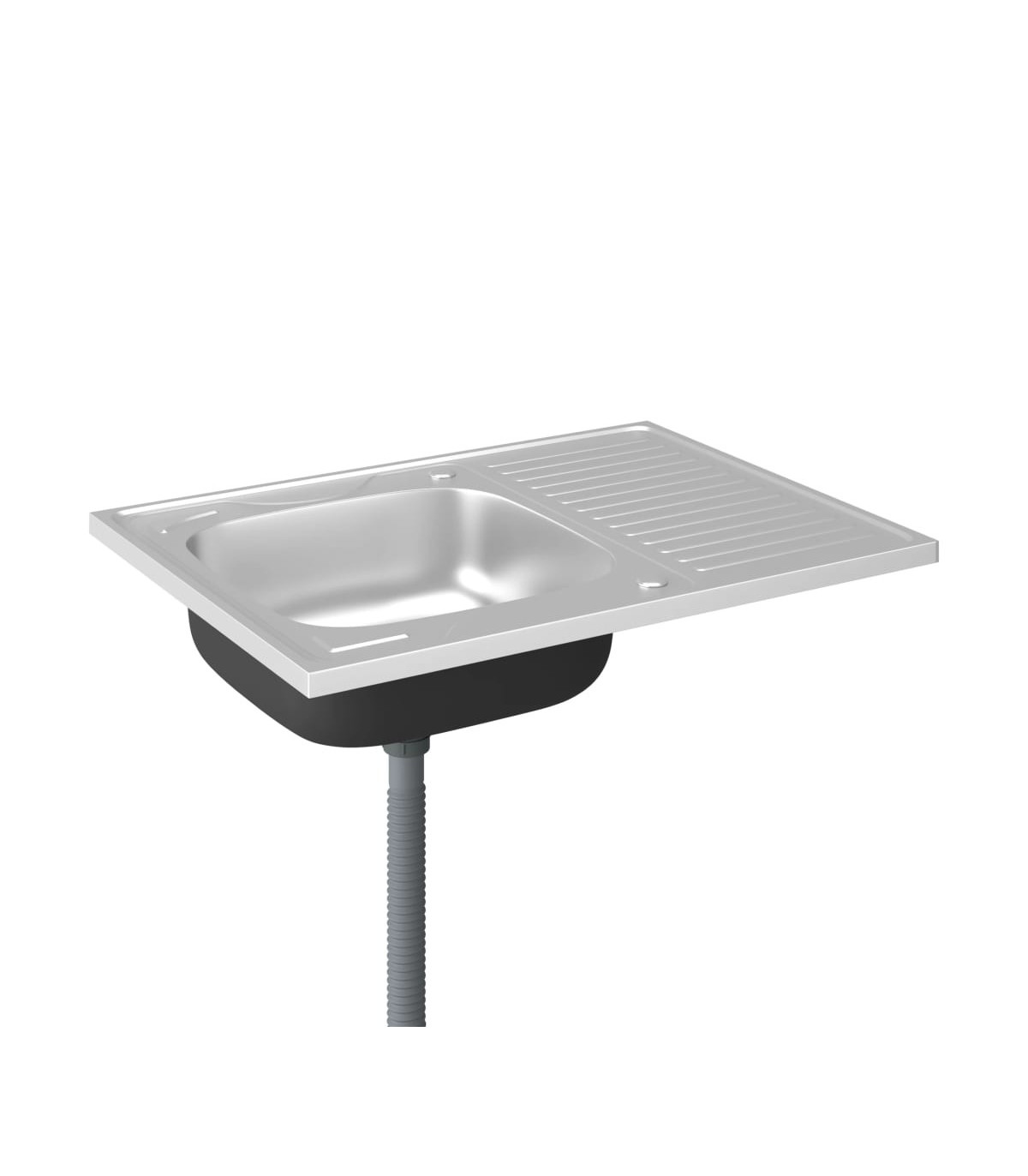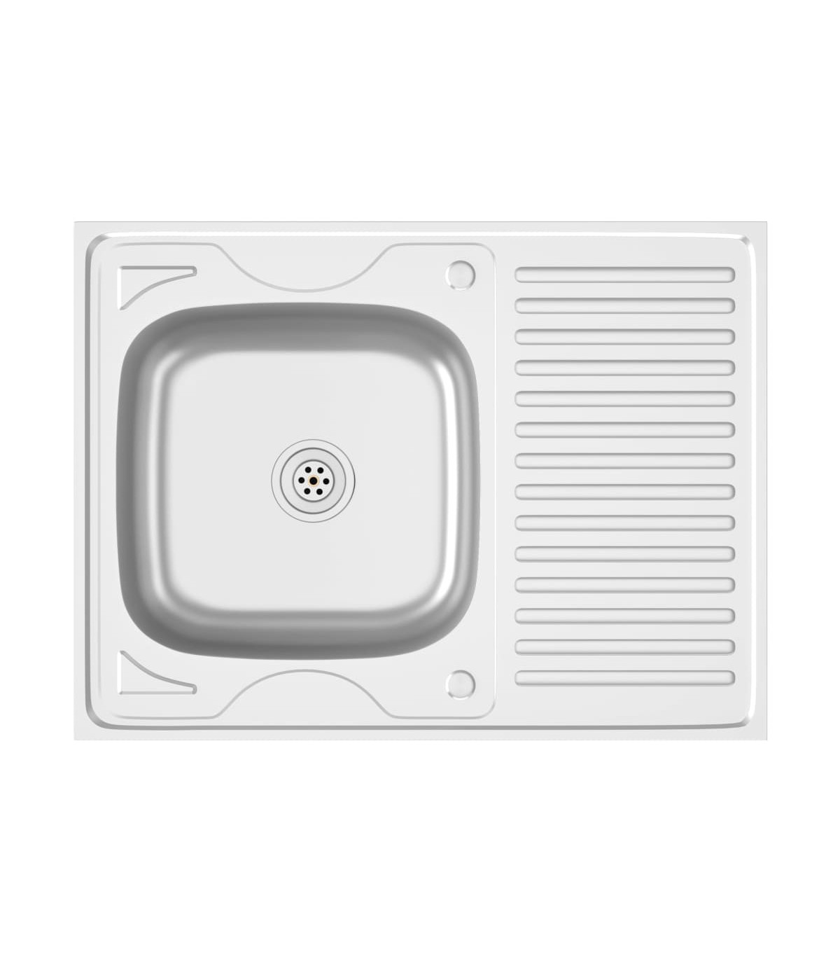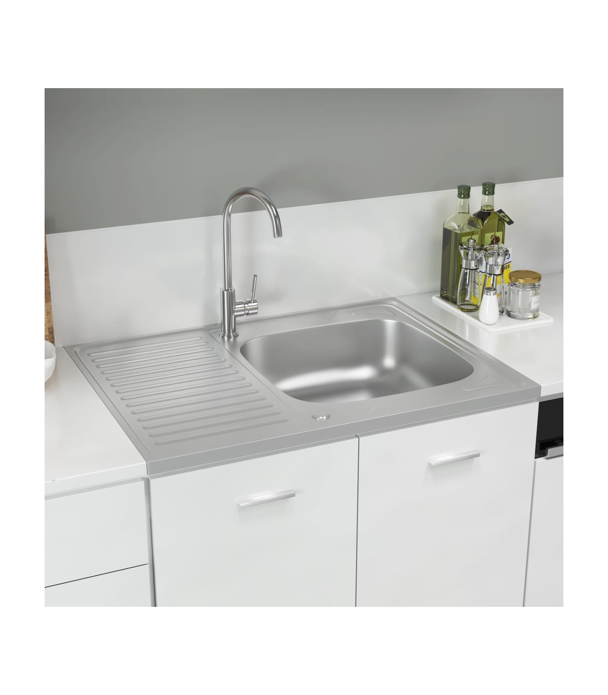 This kitchen sink is a timeless addition to your existing kitchen decor. It features a single, extra-deep basin with a sleek design. The sink is made of SUS (stainless steel), making it heat resistant, scratch and impact resistant and also easy to clean. This basin features extra thick sides to put on top of a cabinet and the side drainer gives you extra space for your dishes. It also has drainer pipe so that it can be put in 2 sides because of the faucet holes on both side. As the sink is fully reversible, it can be fitted either to the left or the right of the basin. Please note: This kitchen sink is suitable for the top-mounting / above-mounting. Good to know: The cabinet and the drain strainer are not included.