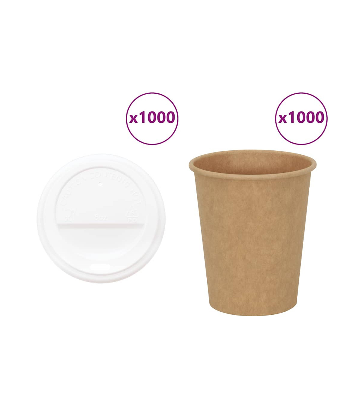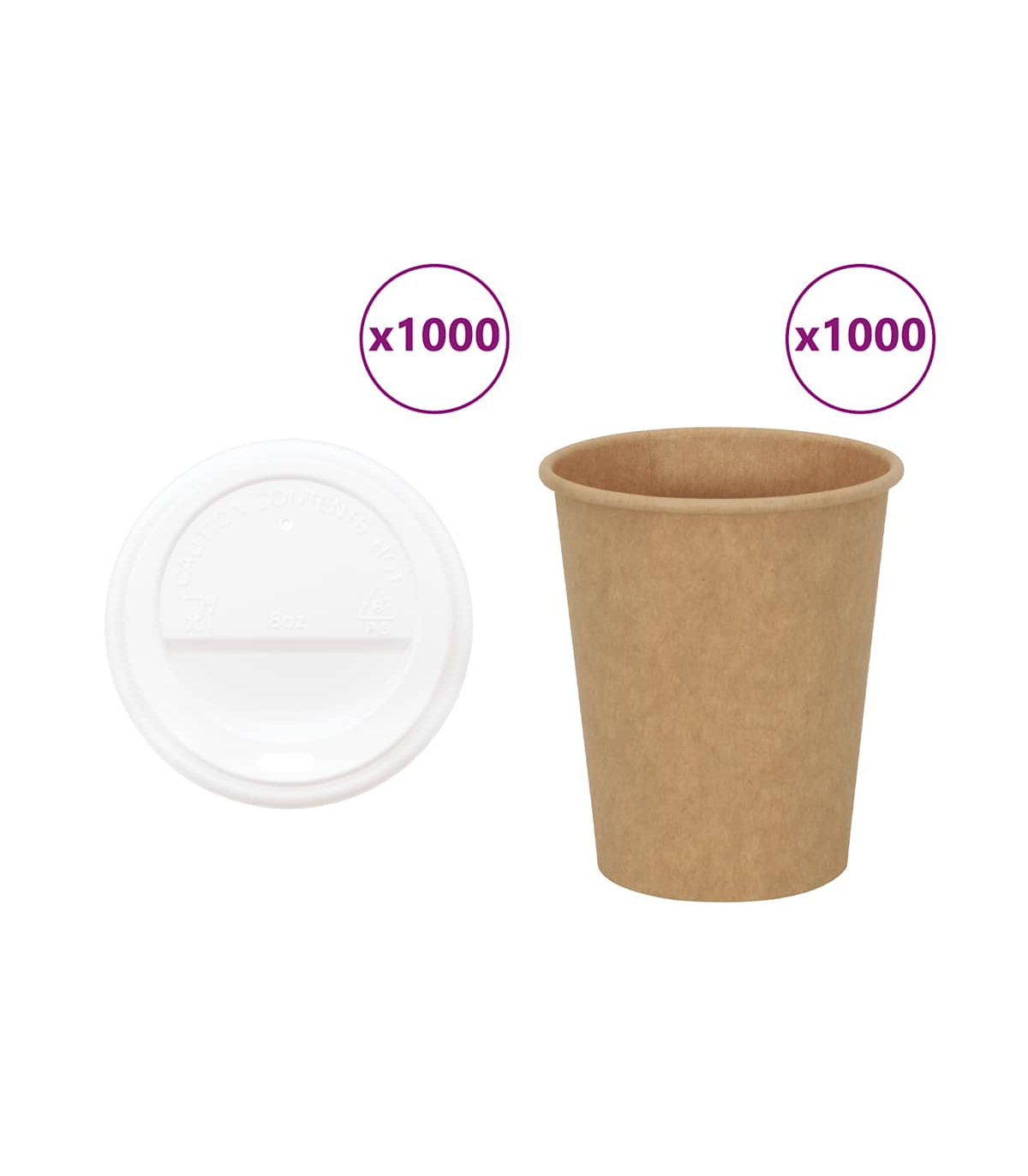 vidaXL Paper Coffee Cups with Lids 1000 pcs 8oz 200ml
