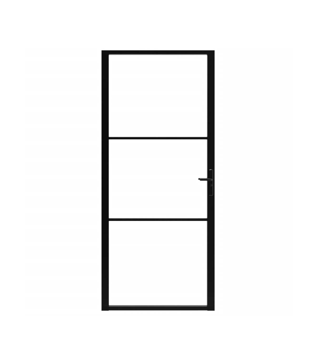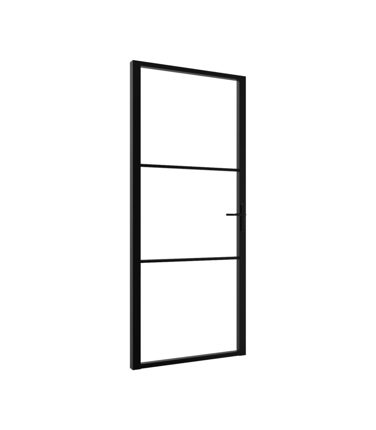 Create a graceful transition from one space to another with this interior door! The tempered glass and aluminium construction ensures durability and sturdiness, making it a perfect addition to your home. The large glazed tempered glass panels allow natural light to flow through, creating a light and airy living space. The modern design with black lines adds a touch of elegance to your interior decor.