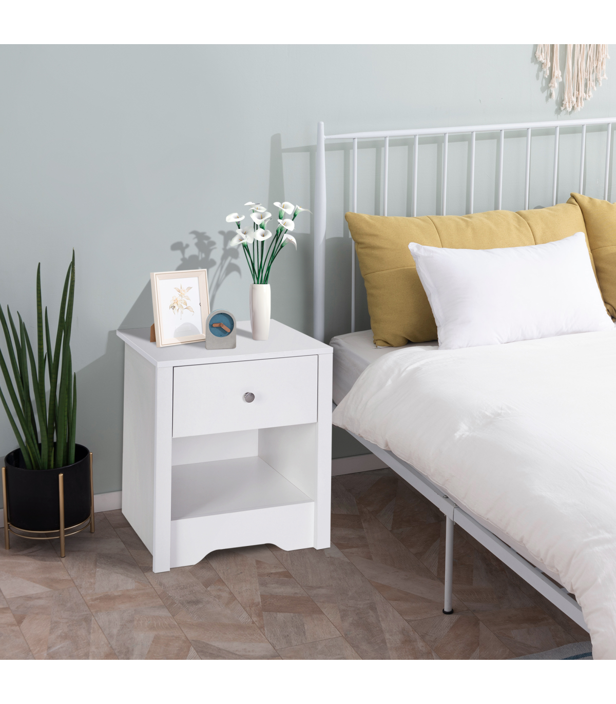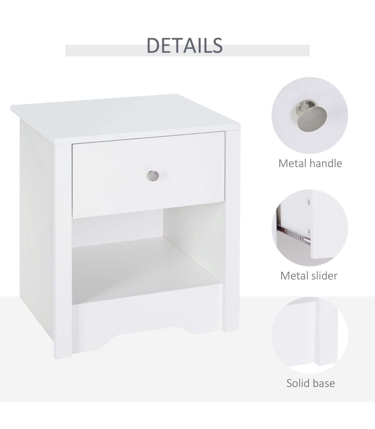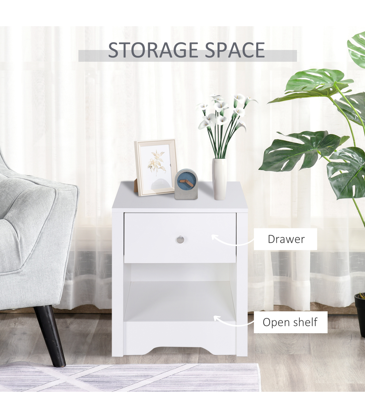 This HOMCOM Bedside cabinet is a great compliment to any room. Made from solid wood and comes complete with a drawer and storage area. Use it as a side table beside your bed or just as a table in your living space. A perfect place to keep your desk lamp and clock. A great place to organize and store your daily essentials.