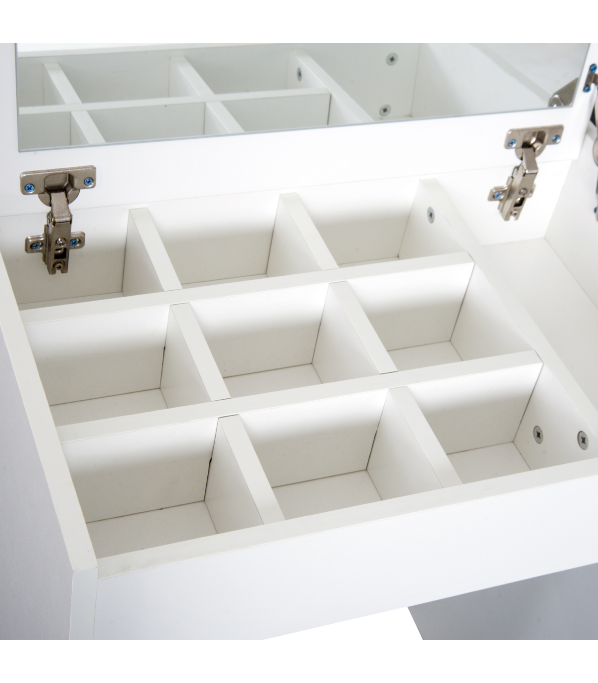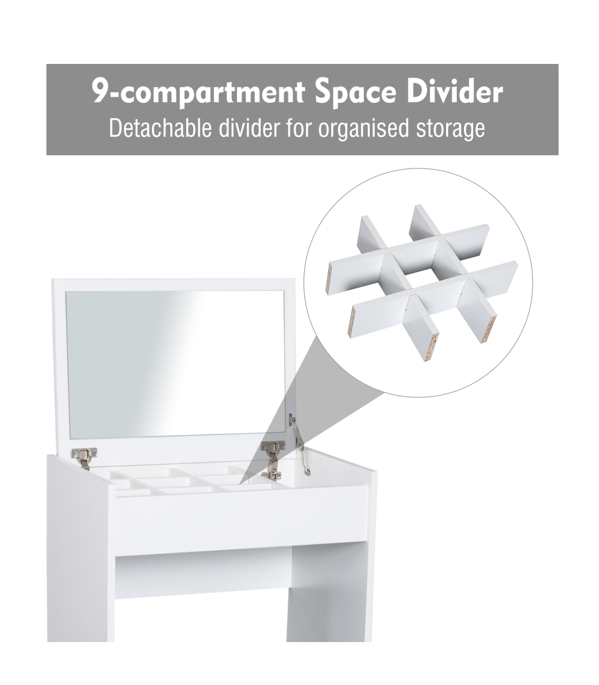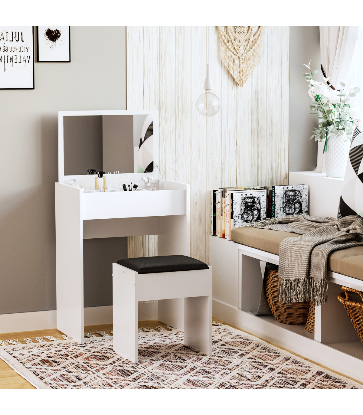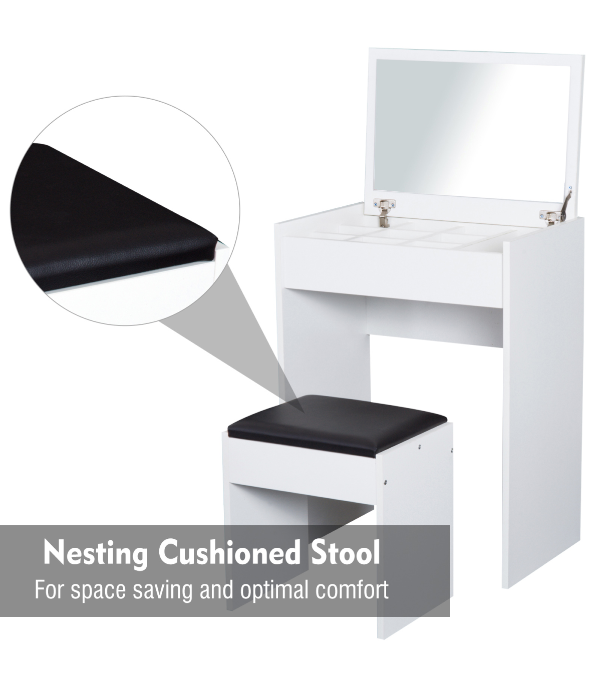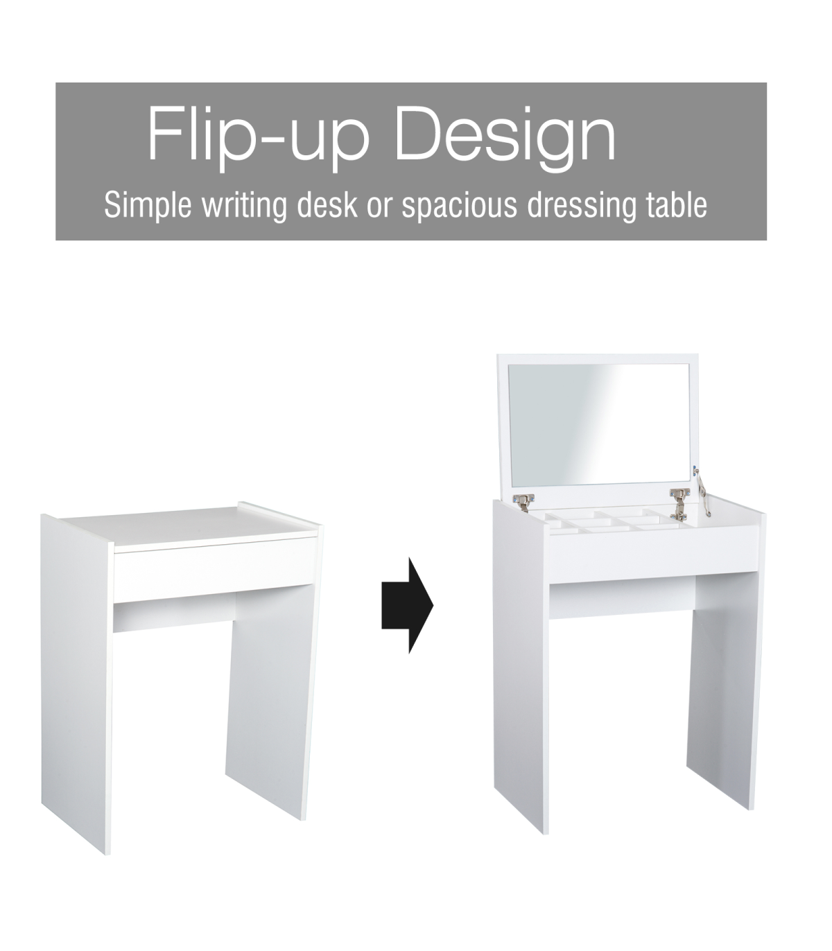 Dressing Table Set White Flip-up Mirror Hidden Space Padded Stool Multi-purpose