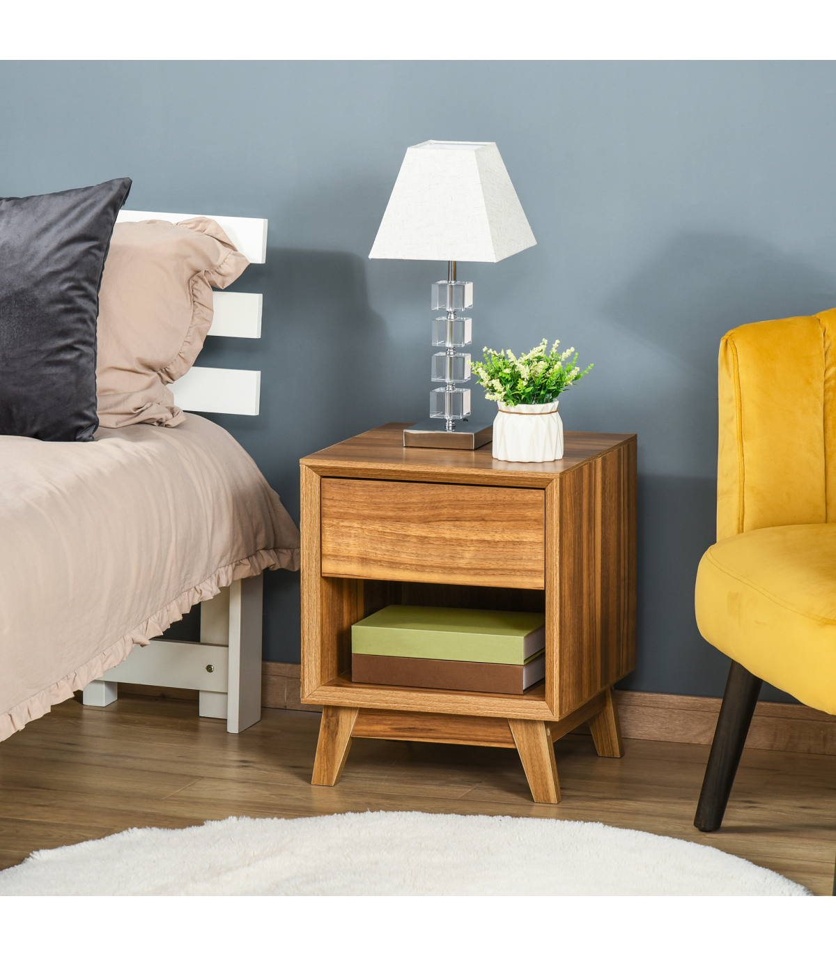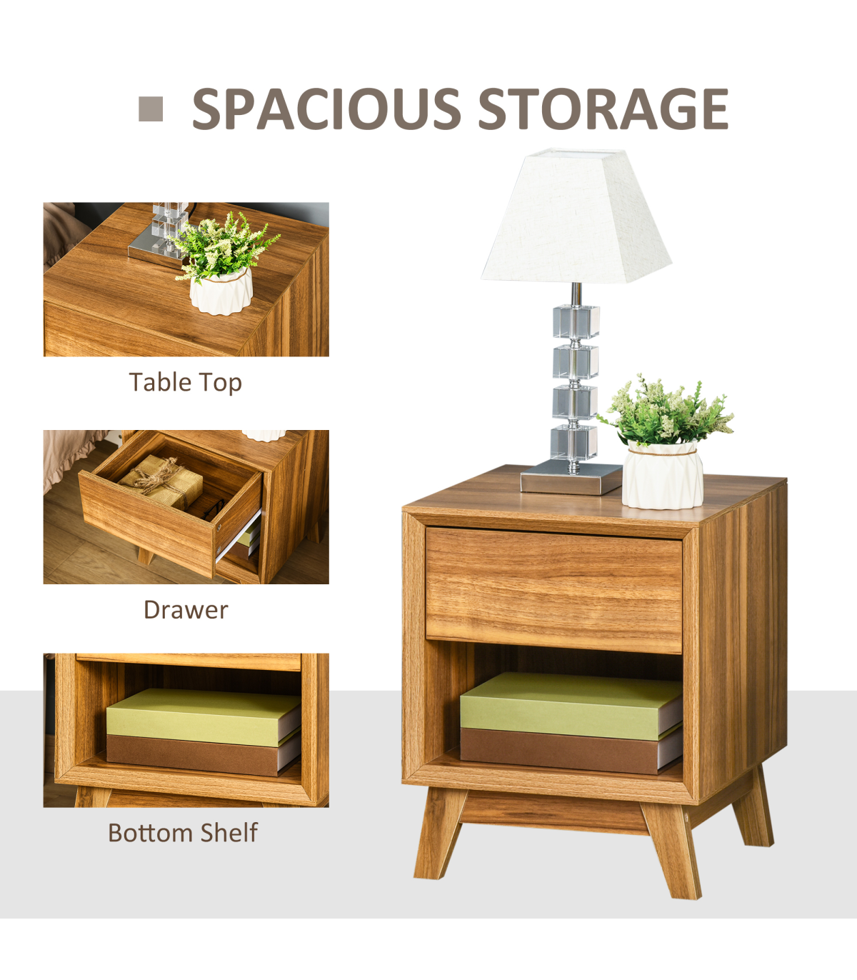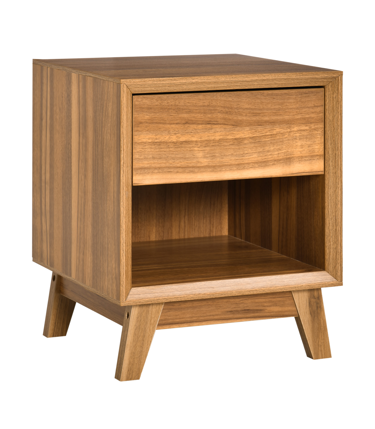 A classic approach to bedtime storage starts with this night stand from HOMCOM. Comes with both a top drawer and bottom shelf for keeping your essentials close. Made from MDF, structure is durable and sturdy, finished in a beautiful wood effect. Fitted with four angled legs for balance. An effortless way to bring style and space into your beautiful space.