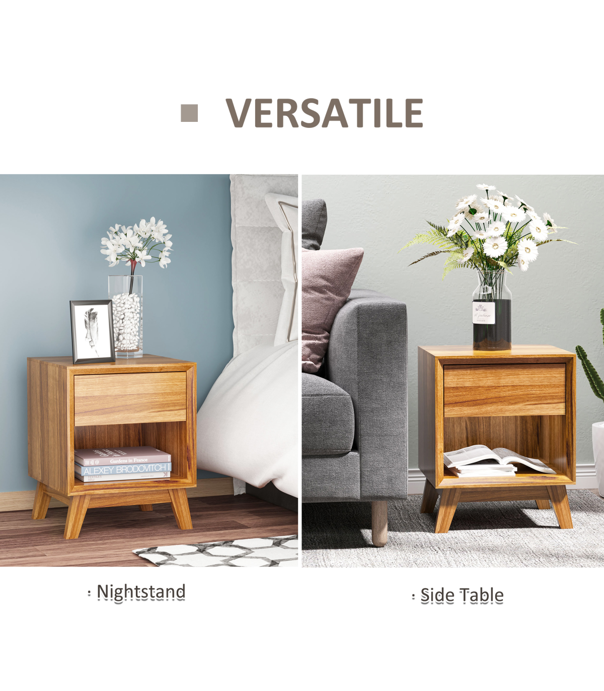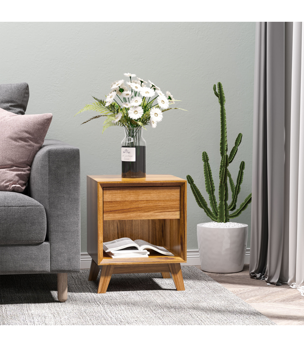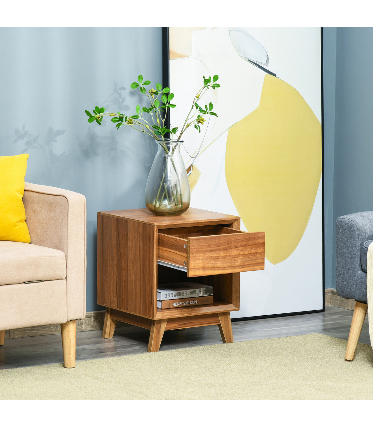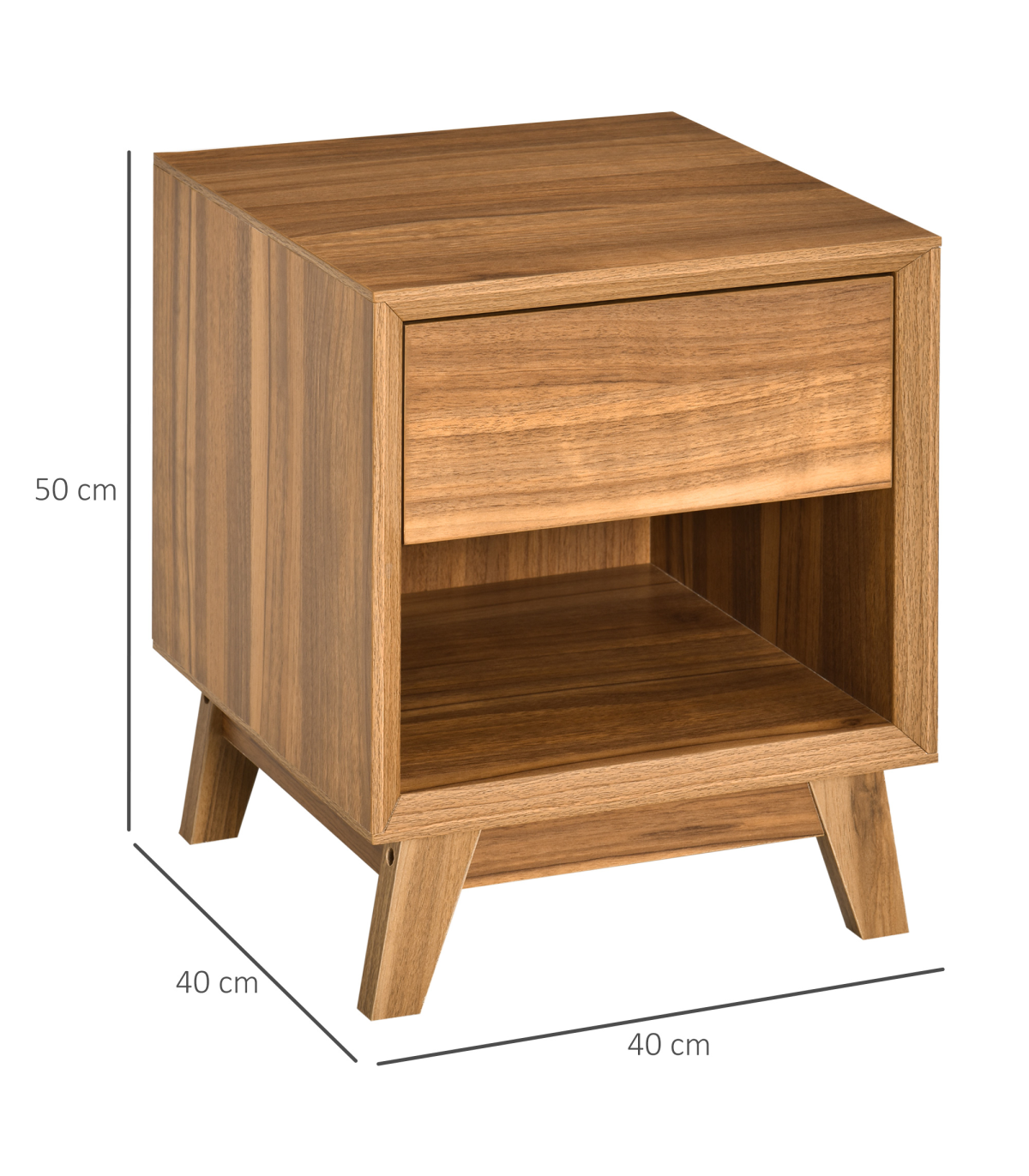 A classic approach to bedtime storage starts with this night stand from HOMCOM. Comes with both a top drawer and bottom shelf for keeping your essentials close. Made from MDF, structure is durable and sturdy, finished in a beautiful wood effect. Fitted with four angled legs for balance. An effortless way to bring style and space into your beautiful space.