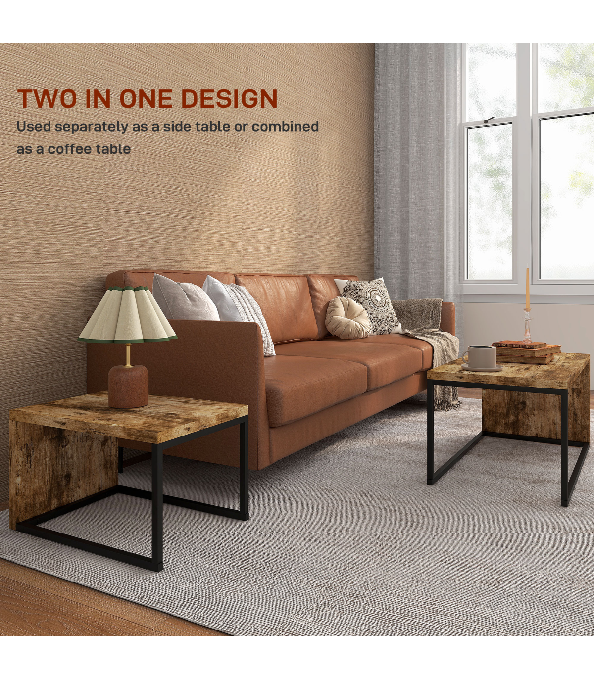 - MULTI-PURPOSE: The set of 2 coffee tables is multi-functional to meet your different requirements. Perfect to be used separately as a side table in the bedroom or reading table in the study, or combined as a coffee table in the living room. The two desktops provide more space for your daily items.