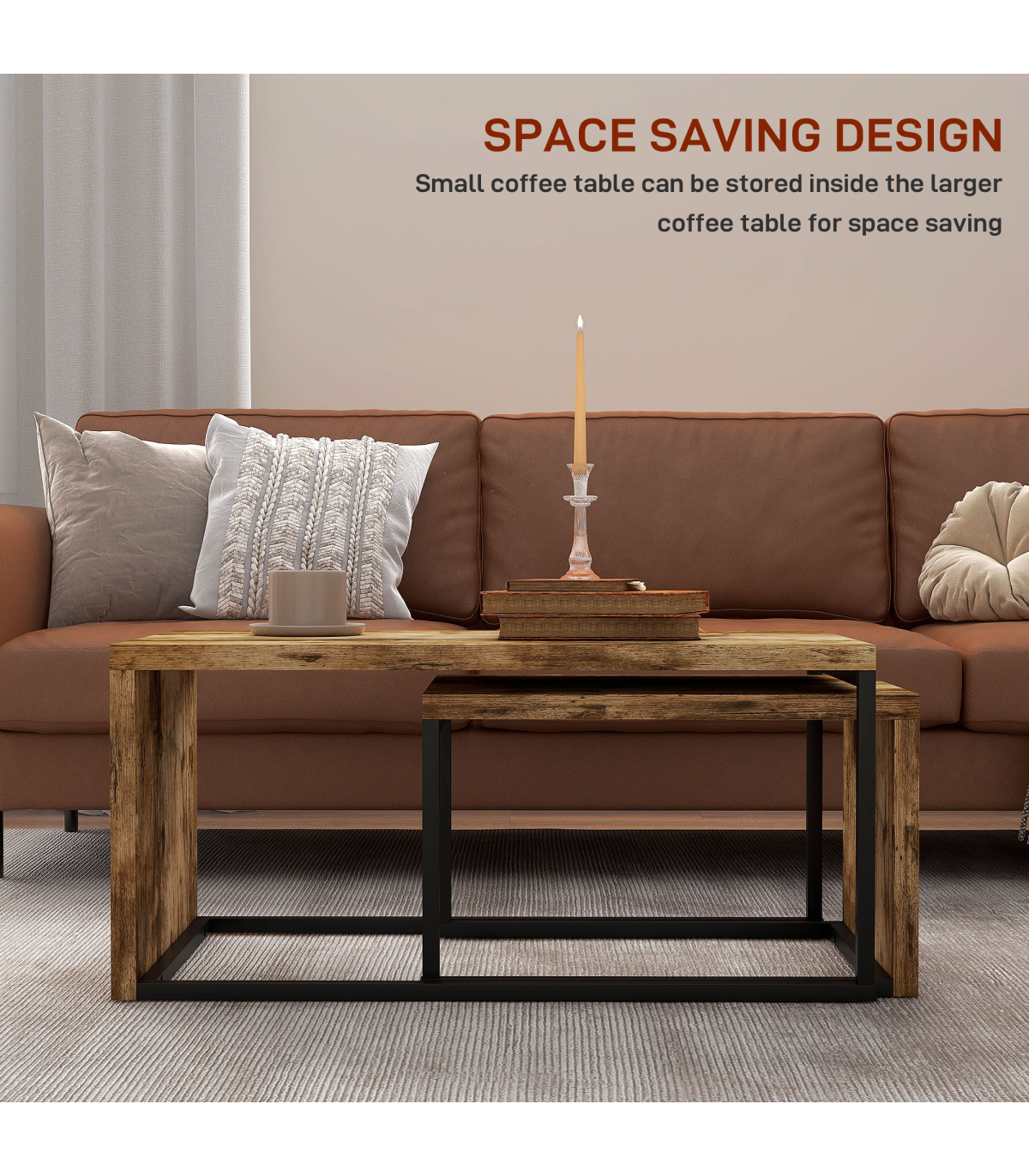 - COMPACT SIZE: The lightweight and space-saving design make this small coffee table can be stored inside the larger coffee table or used separately. It is easy to clean and maintain, taking your home decor to the next level.