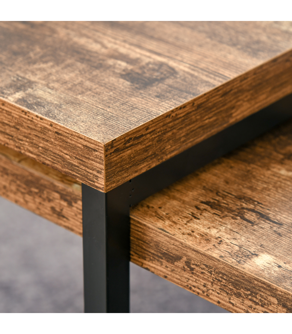 - STYLISH & PRACTICAL DESIGN: The original wood grain color coffee table set mixed with a black base will inject a natural and fresh atmosphere into your home, creating a great visual effect, and easily match various home styles.