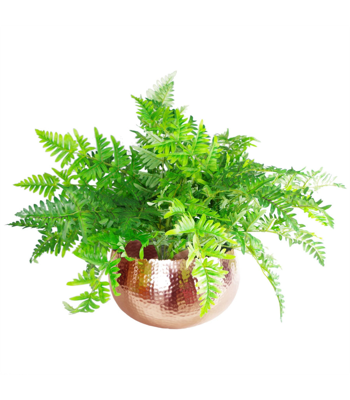 Leaf Large Metal Planter Bowl 32 x 20cm Hammered Copper Colour - Curvy Edge