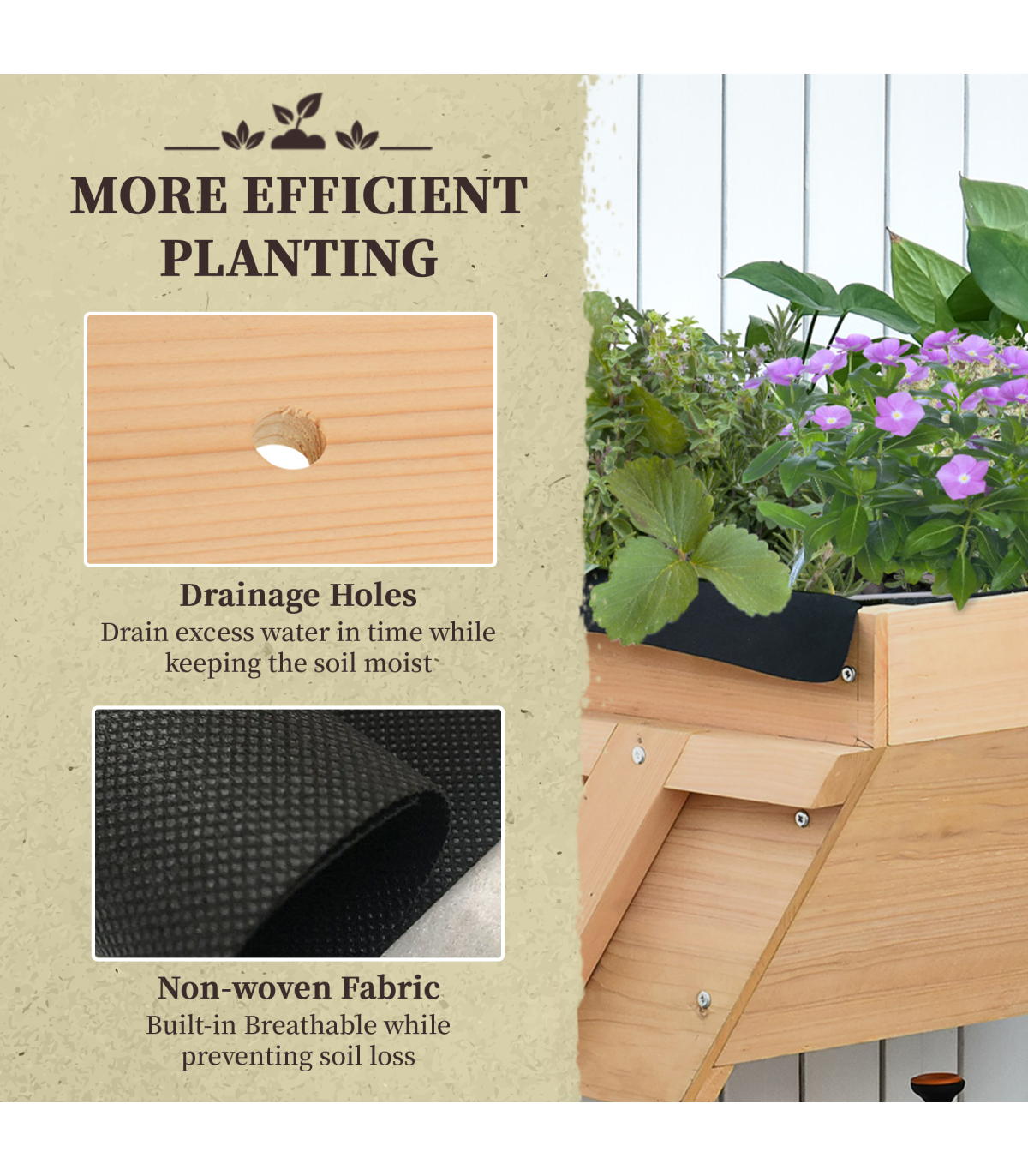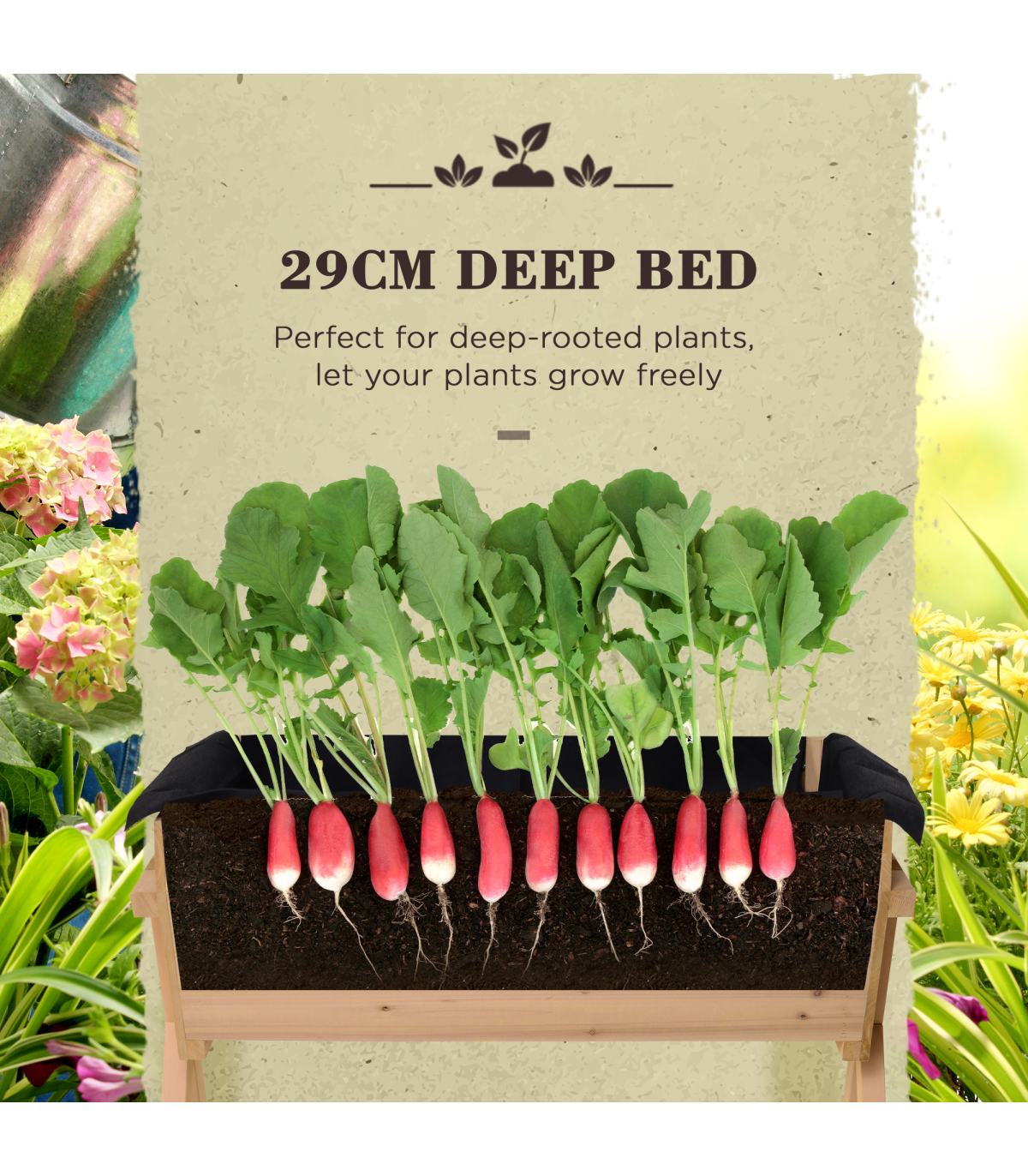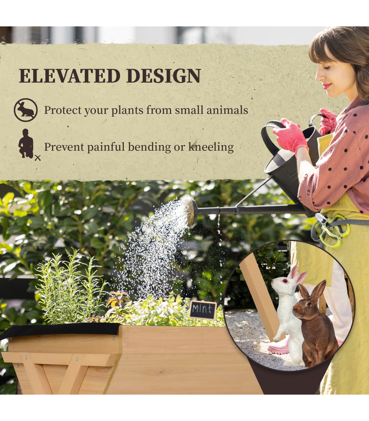 Fall in love with gardening all over again with this flower bed from Outsunny. Using fir wood for solid strength and support for a weight up to 50kg, it is crafted into an elevated trough design, allowing it to sit at a higher level to relieve stress and strain from your back and knees whilst potting and maintaining your plants, flowers, and vegetables. Measuring a large 29 x 91cm, the planter is equipped with a UV and weather-resistant liner bag, ensuring it is easy to clean up, whilst allowing your plants to breathe to optimize growth. With a drainage hole on the bottom of the planter, it is finished with four cross-over legs, providing stable support for many seasons to come. A great addition to your garden, balcony, conservatory, and patio.