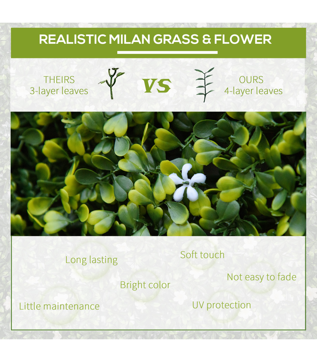 Lack of greeneries at home or in the garden but don't want to take care of them? The faux plant wall panel with Milan leaves and flowers can aesthetically enhance your area with a realistic look to beautify and transform your garden, fencing, balcony, porch, or your own creative design. No maintenance, trimming, or watering is required but it provides the look of a live plant! Built to resist damage from outdoor elements like UV, high and low temperatures, and are perfect for year-round use.
