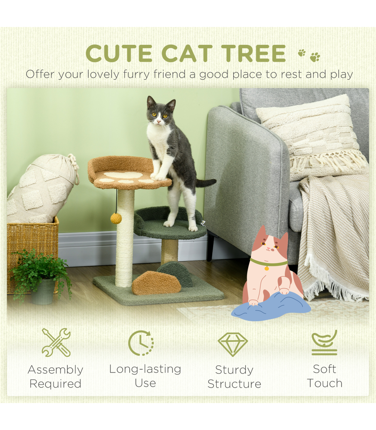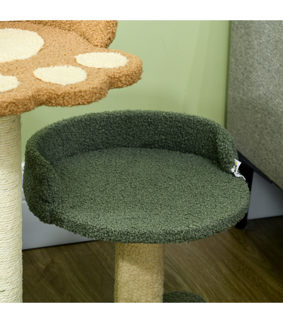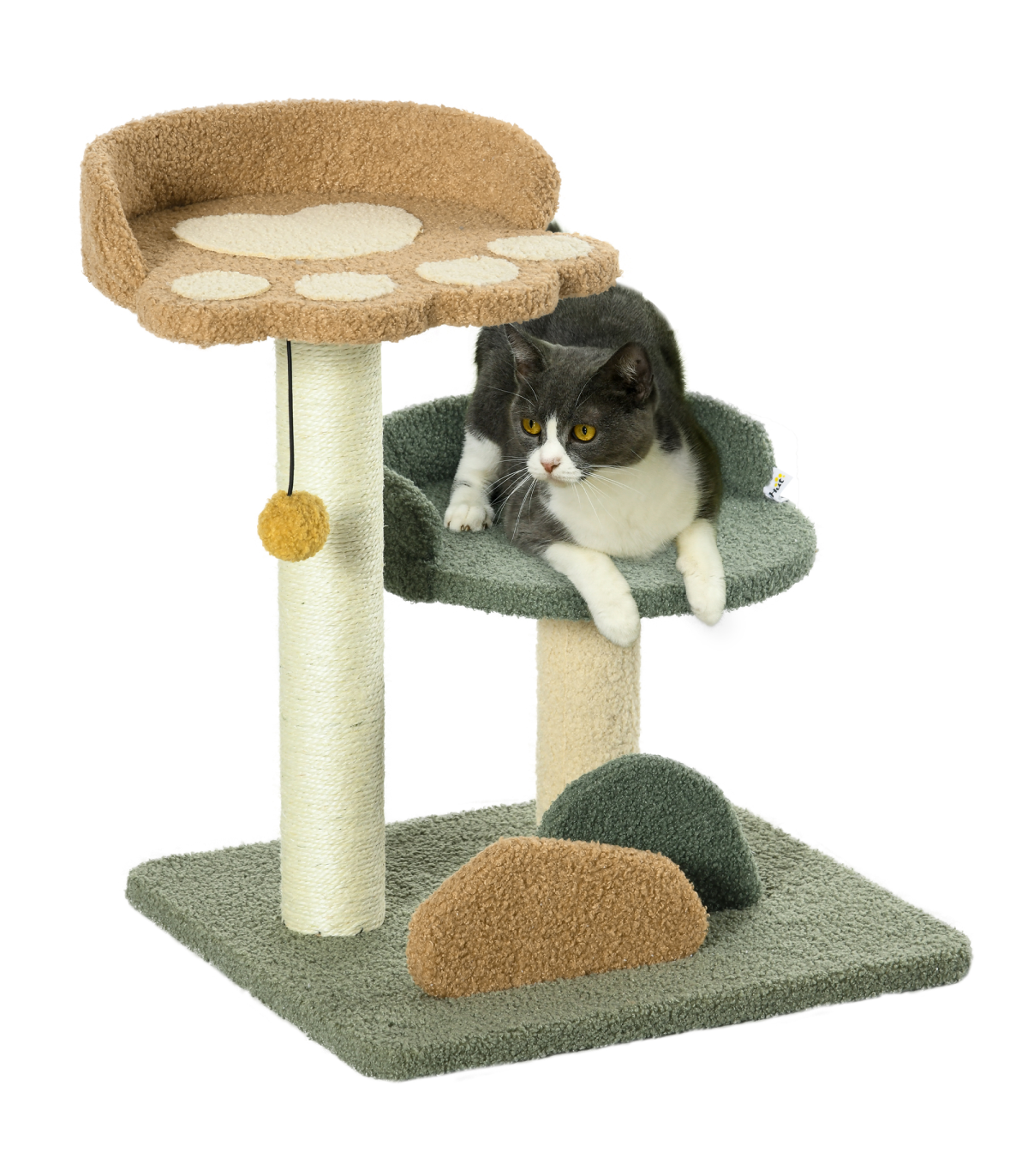 Cat Tree 52cm Green Brown Beige Particle board Velvet Sisal 43W x 39D x 52Hcm