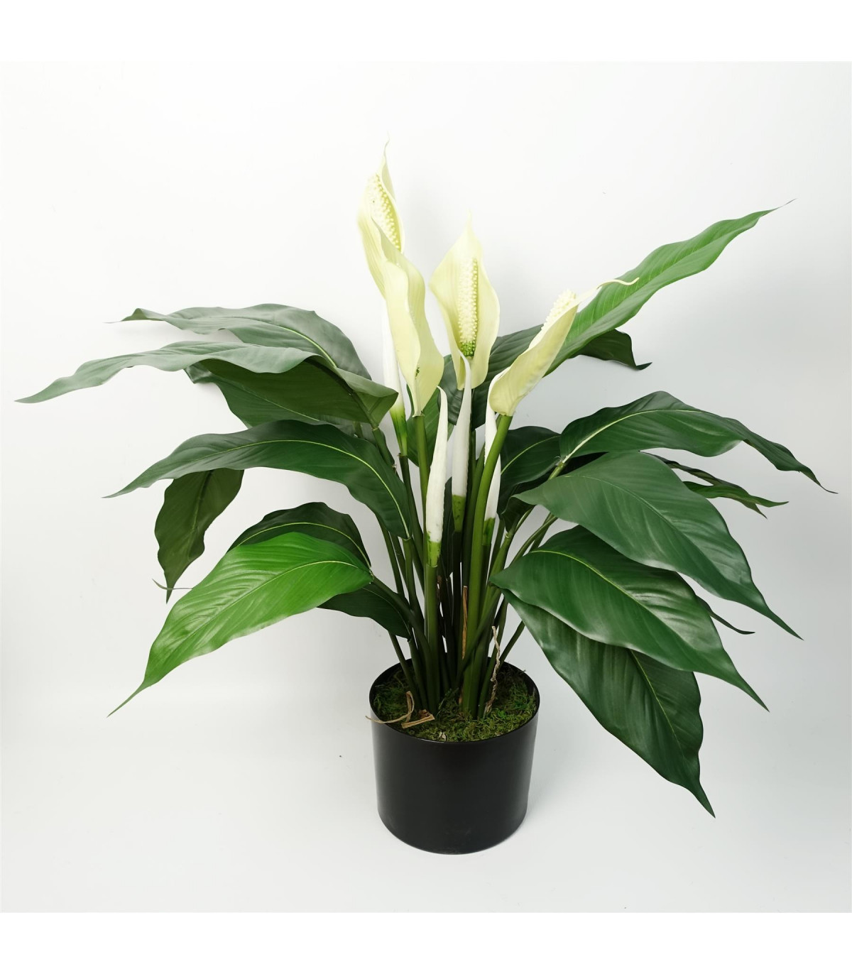 Artificial Peace Lily White Silk 60cm Realistic Replica Indoor Use Weighted Pot