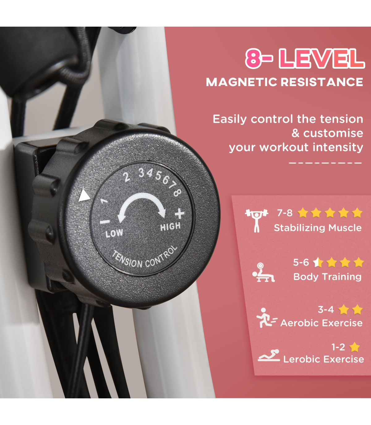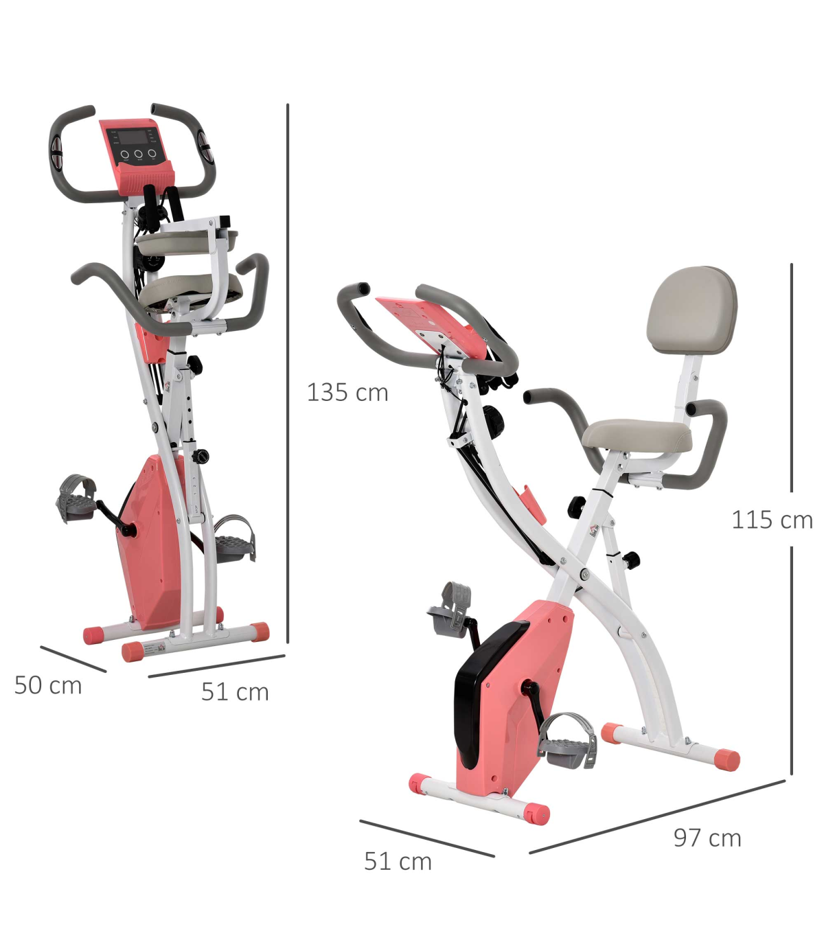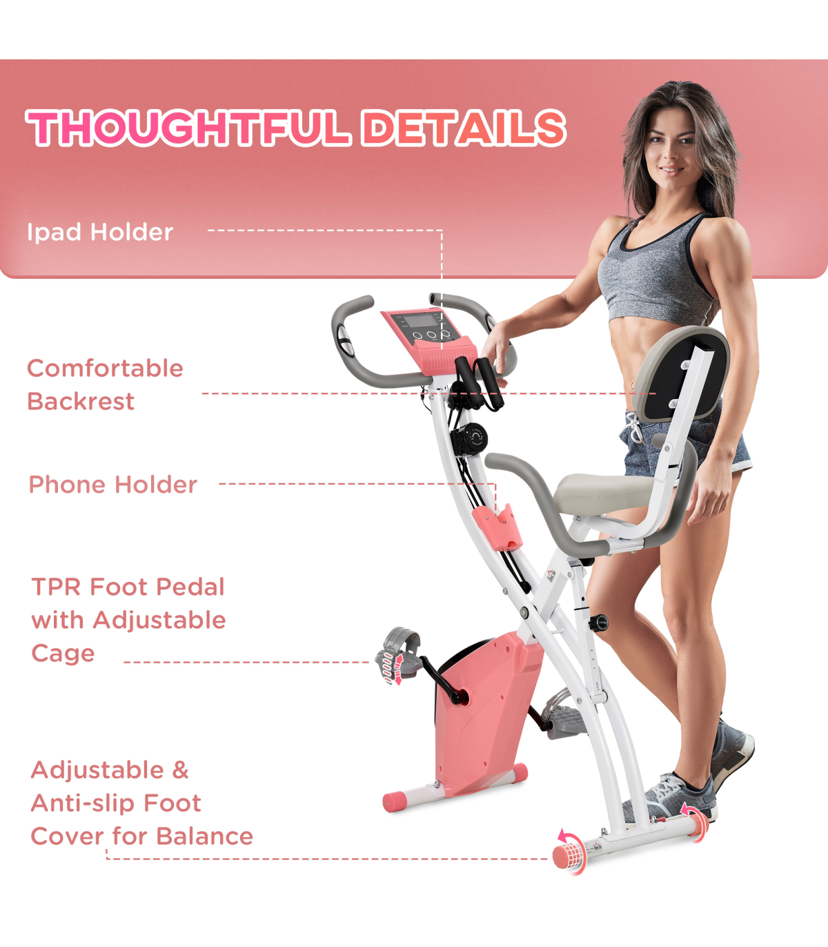 Get a complete cardio workout in the comfort of your own home with an indoor resistance adjustable exercise bike from HOMCOM. With the exercise bike with an LCD that tracks time, speed, distance, heart rate, and calories burned you can monitor your progress while you work out. Come with a phone holder, you can watch your favorite shows during exercise. It can be used as an upright exercise bike, a recumbent bike, and a tension rope to help improve upper body strength.
