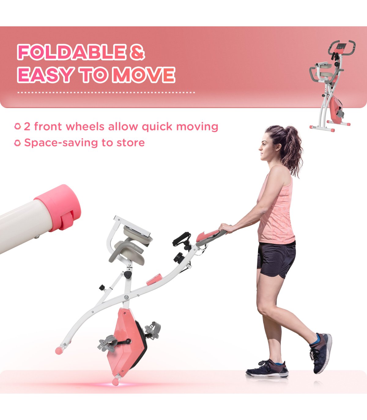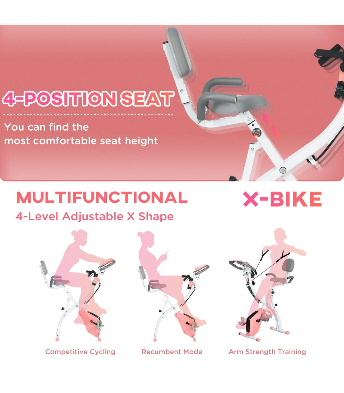 - FOLDABLE SPACE SAVING X-BIKE DESIGN: When not in use, the entire bike can be folded upright to half of the assembled size for easy and space-saving storage