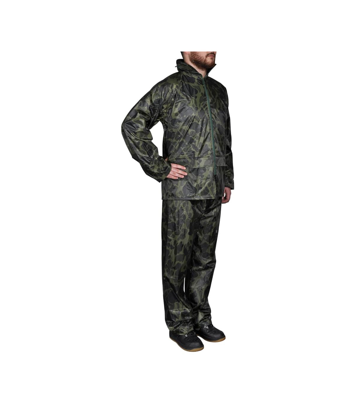 This lightweight yet durable 2-piece rain suit will be ideal for all outdoor activities, such as hiking, walking, fishing, gardening, and building jobs. It features 2 big pockets with flaps on the jacket and 2 side slant pockets so you can reach the pants you are wearing under the rain pant. There is also a hidden hood in the jacket collar. The elastic sleeve cuffs and waistband will fit different sizes to ensure a comfortable fit. Made from high quality pvc coated polyester, this rain suit is waterproof and built to last. Please check the size carefully before making a purchase.