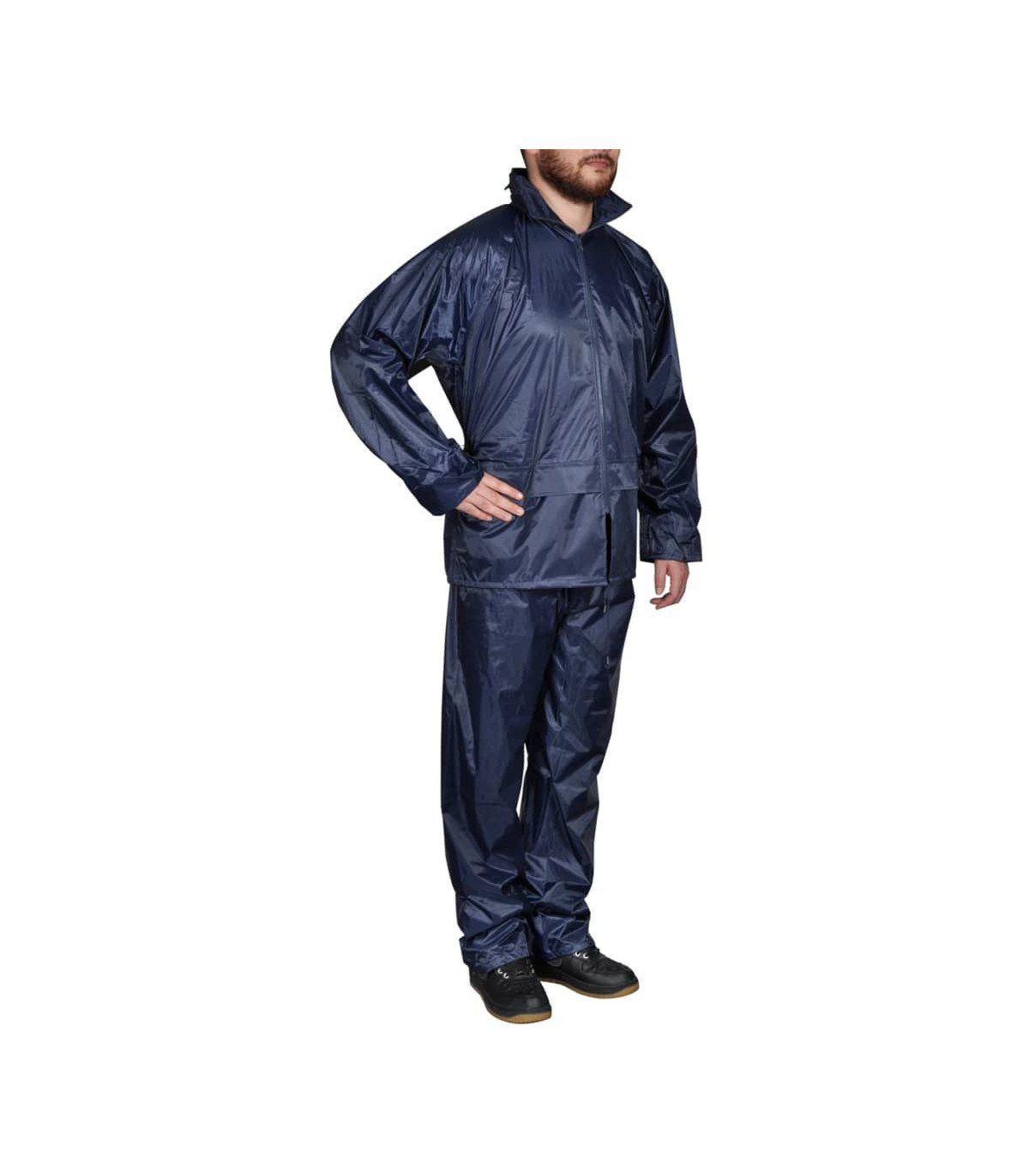 This lightweight yet durable 2-piece rain suit will be ideal for all outdoor activities, such as hiking, walking, fishing, gardening, and building jobs. It features 2 big pockets with flaps on the jacket and 2 side slant pockets so you can reach the pants you are wearing under the rain pant. There is also a hidden hood in the jacket collar. The elastic sleeve cuffs and waistband will fit different sizes to ensure a comfortable fit. Made from high quality pvc coated polyester, this rain suit has is waterproof and built to last. Please check the size carefully before making a purchase.