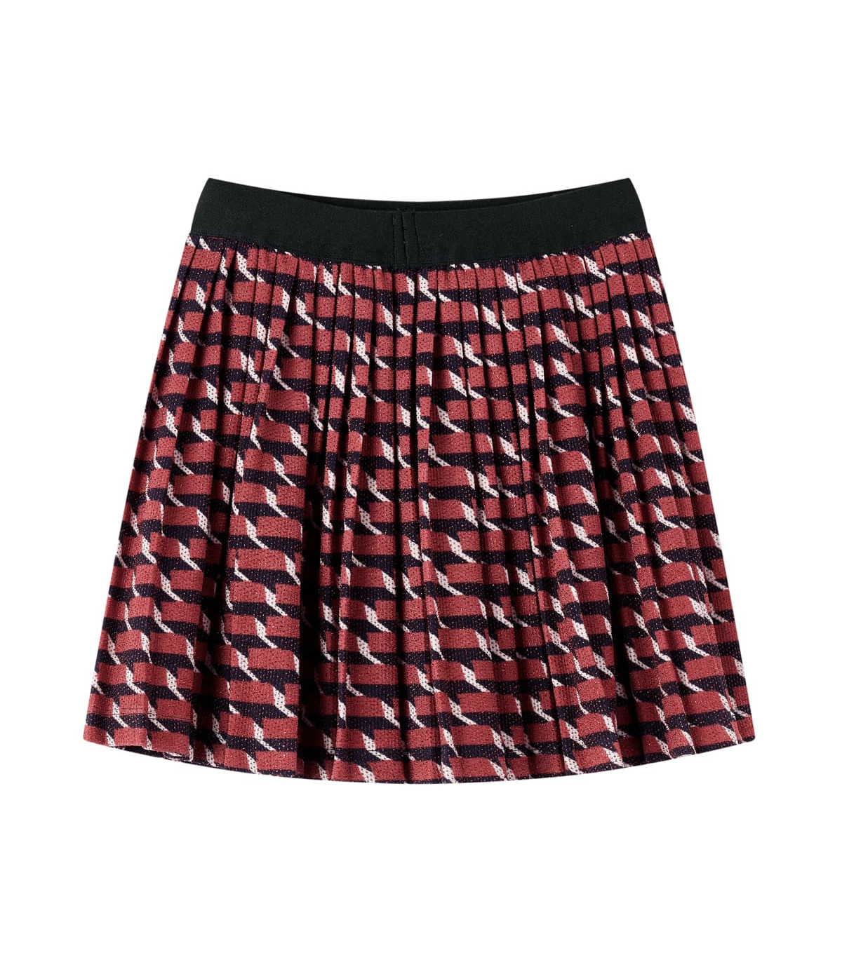Our children's clothing line is all about affordable, high-quality, and durable everyday wear for kids aged 1.5 to 10. Our range includes jackets, sweaters, shirts, and many more, with a variety in style, size, and colour. Following the high quality standard in the market, we are using high-grade materials and advanced manufacturing techniques. This kids' skirt has an A-line design and a wide elastic waistband. The pleats add elegance to the kids' short skirt. The girls' skirt has beautiful prints and red glitter. The children's skirt is made of soft material that includes polyamide, lurex and elastane for comfort and breathability. Good to know: This size chart in the picture provides measurements for kids aged 1.5 to 10, covering the height, chest, waist, and hip. You can easily find the right fit for your child.