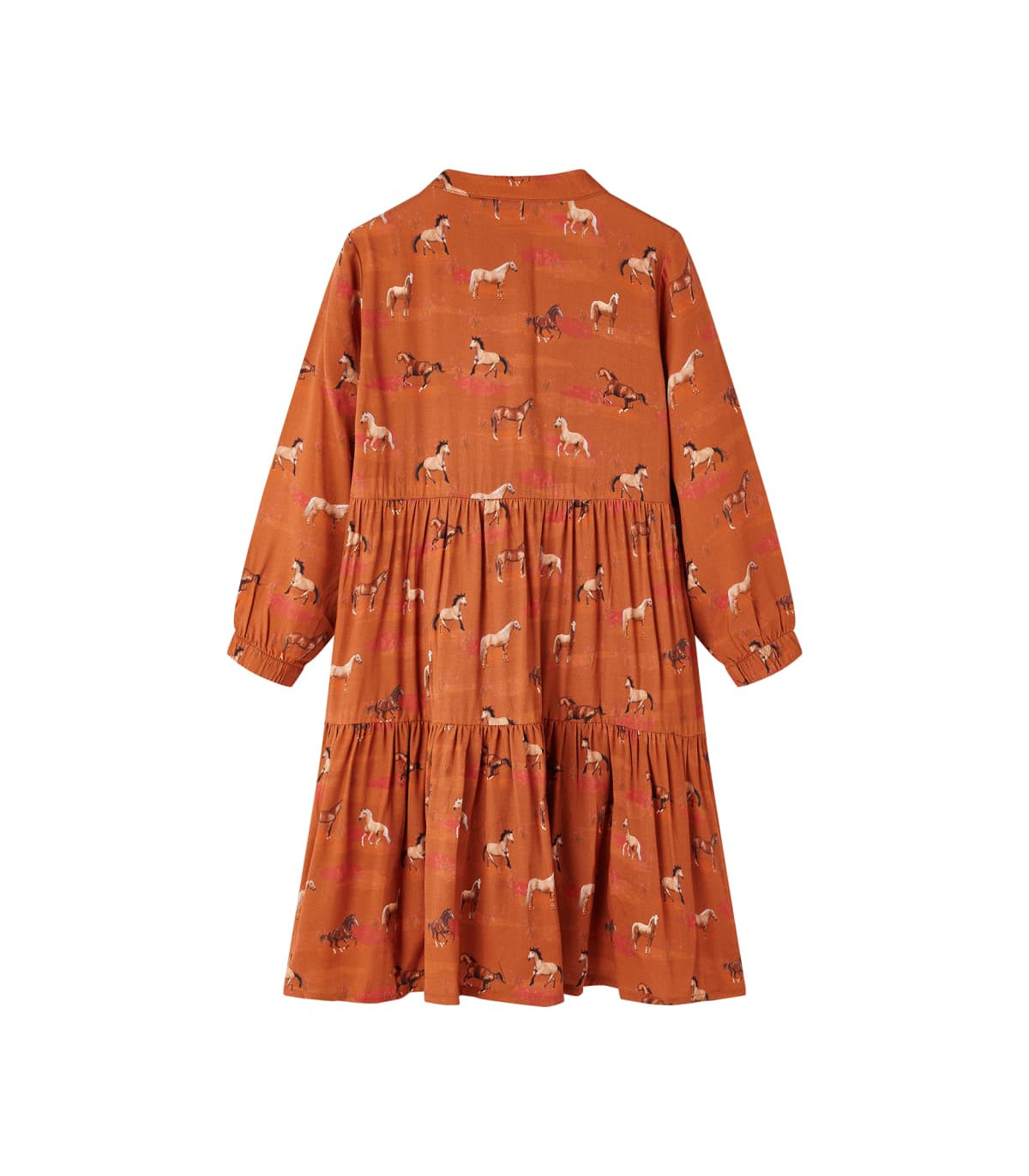 Our children's clothing line is all about affordable, high-quality, and durable everyday wear for kids aged 1.5 to 10. Our range includes jackets, sweaters, shirts, and many more, with a variety in style, size, and colour. Following the high-quality standard in the market, we are using high-grade materials and advanced manufacturing techniques. This kids' dress has long sleeves, a band collar, and closes with buttons at the front. The girls' dress is printed with lovely horses, elasticated at the cuffs, and gathered seams at the waist and knee. Made of lyocell, the children's dress is soft and breathable. Good to know: The size chart in the picture provides measurements for kids aged 1.5 to 10, covering the height, chest, waist, and hip. You can easily find the right fit for your child.