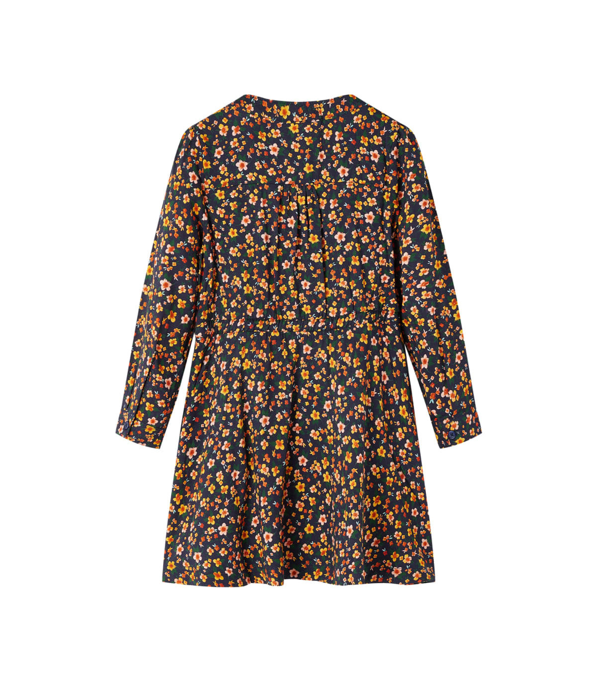 Our children's clothing line is all about affordable, high-quality, and durable everyday wear for kids aged 1.5 to 10. Our range includes jackets, sweaters, shirts, and many more, with a variety in style, size, and colour. Following the high-quality standard in the market, we are using high-grade materials and advanced manufacturing techniques. This midi dress has a round neckline, long sleeves, an adjustable waist drawstring and closes with a row of front buttons. The all-over floral print makes the dress look elegant and beautiful. The long sleeve dress is made from 100% lyocell for comfort and breathability. Good to know: This size chart in the picture provides measurements for kids aged 1.5 to 10, covering the height, chest, waist, and hip. You can easily find the right fit for your child.