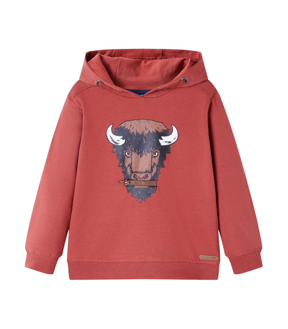 Our children’s clothing line is all about affordable, high-quality, and durable everyday wear for kids aged 1.5 to 10. Our range includes jackets, sweaters, shirts, and many more, with a variety in style, size, and colour. Following the high-quality standard in the market, we are using high-grade materials and advanced manufacturing techniques. This kids' hooded sweatshirt has long sleeves and ribbed cuffs and hem. This kids' sweatshirt features an ox print with a zipper as a mouth. Open the zipper and there is a smiley tongue in it. The children's hoodie is made of 95% cotton and 5% elastane, which is treated with a silicon and enzyme wash for a soft and comfortable touch. The soft fleece and baby terry lining provides extra warmth. Good to know: The size chart in the picture provides measurements for kids aged 1.5 to 10, covering the height, chest, waist, and hip. You can easily find the right fit for your child.