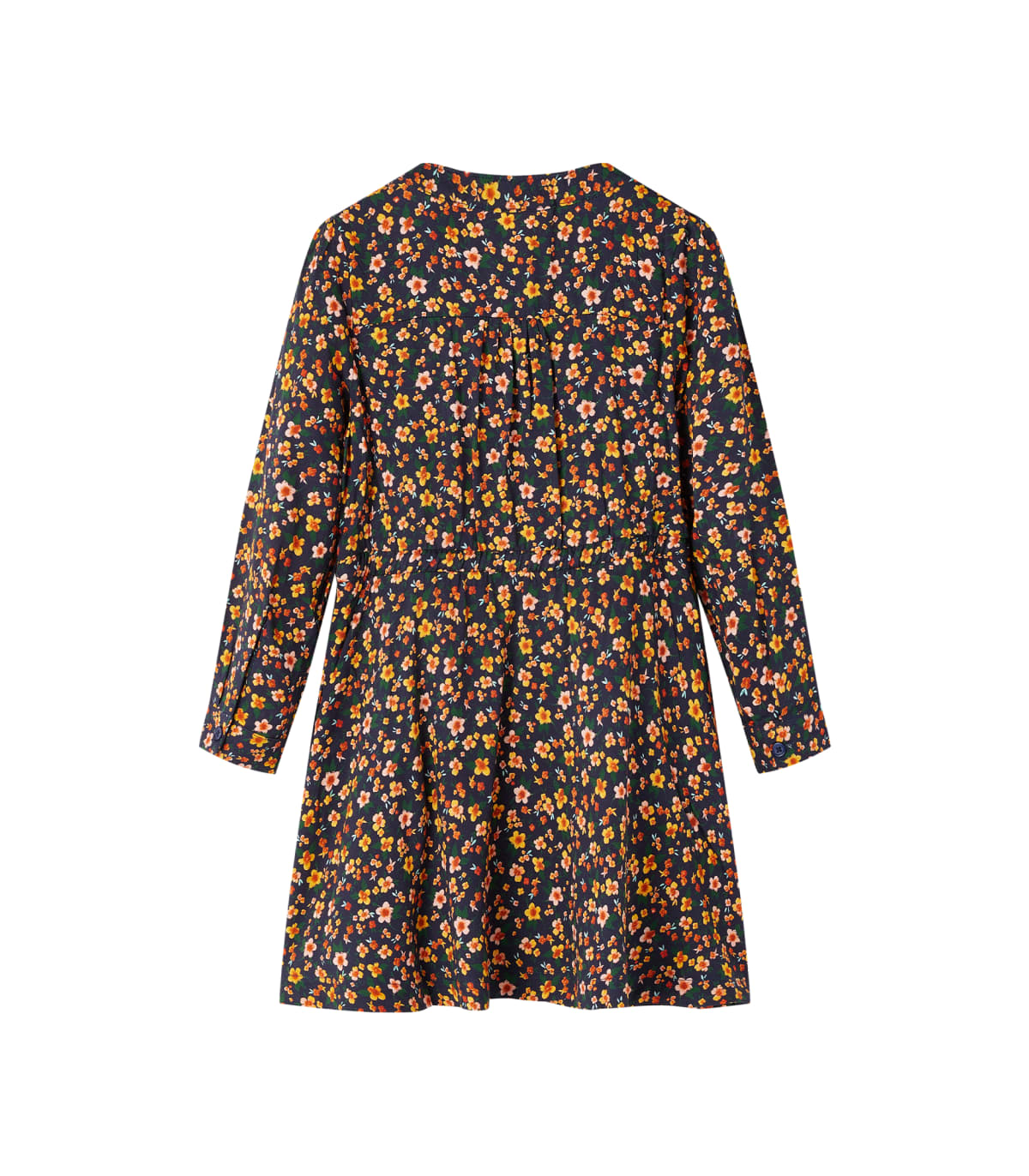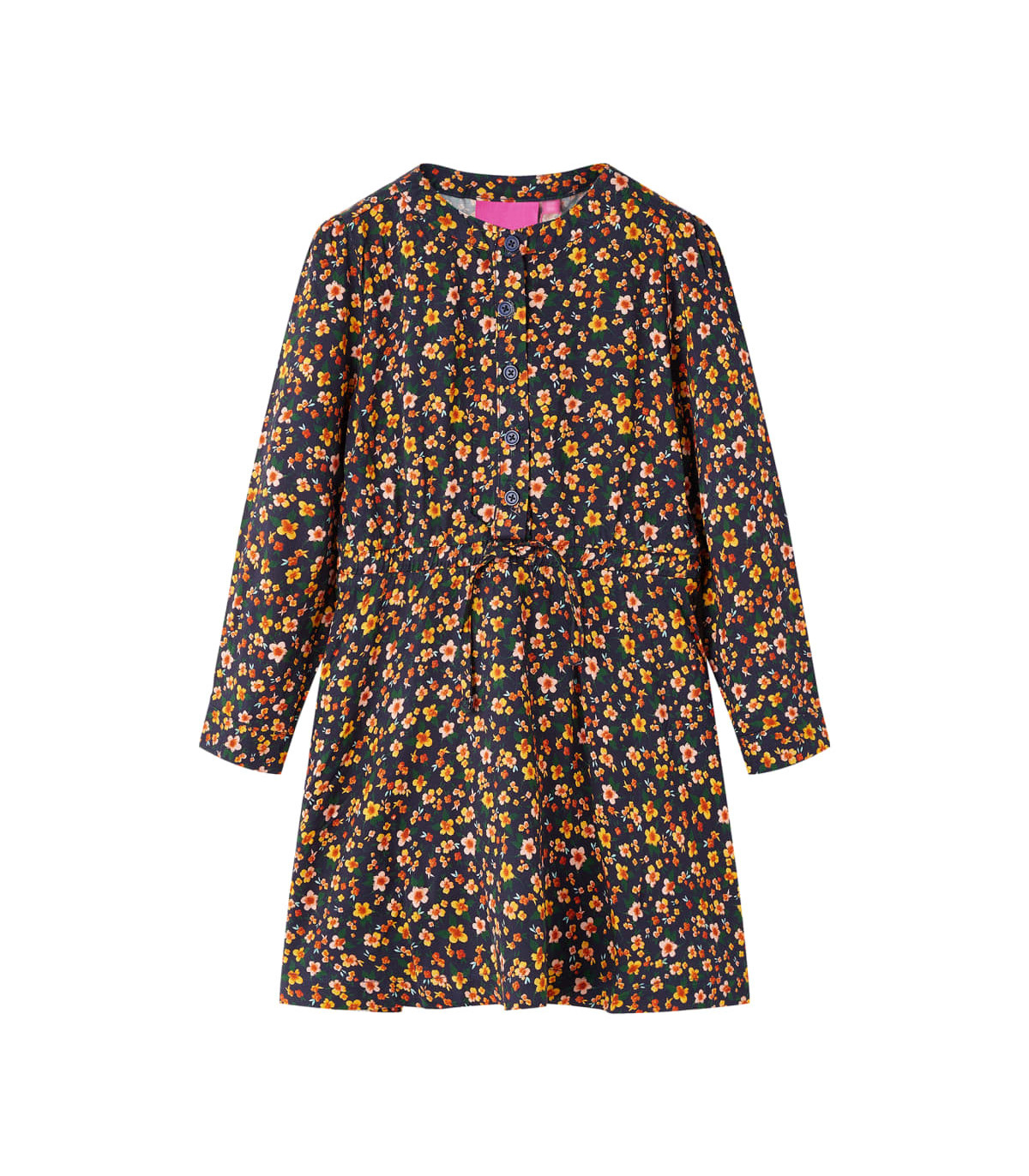 Our children's clothing line is all about affordable, high-quality, and durable everyday wear for kids aged 1.5 to 10. Our range includes jackets, sweaters, shirts, and many more, with a variety in style, size, and colour. Following the high-quality standard in the market, we are using high-grade materials and advanced manufacturing techniques. This midi dress has a round neckline, long sleeves, an adjustable waist drawstring and closes with a row of front buttons. The all-over floral print makes the dress look elegant and beautiful. The long sleeve dress is made from 100% lyocell for comfort and breathability. Good to know: This size chart in the picture provides measurements for kids aged 1.5 to 10, covering the height, chest, waist, and hip. You can easily find the right fit for your child.