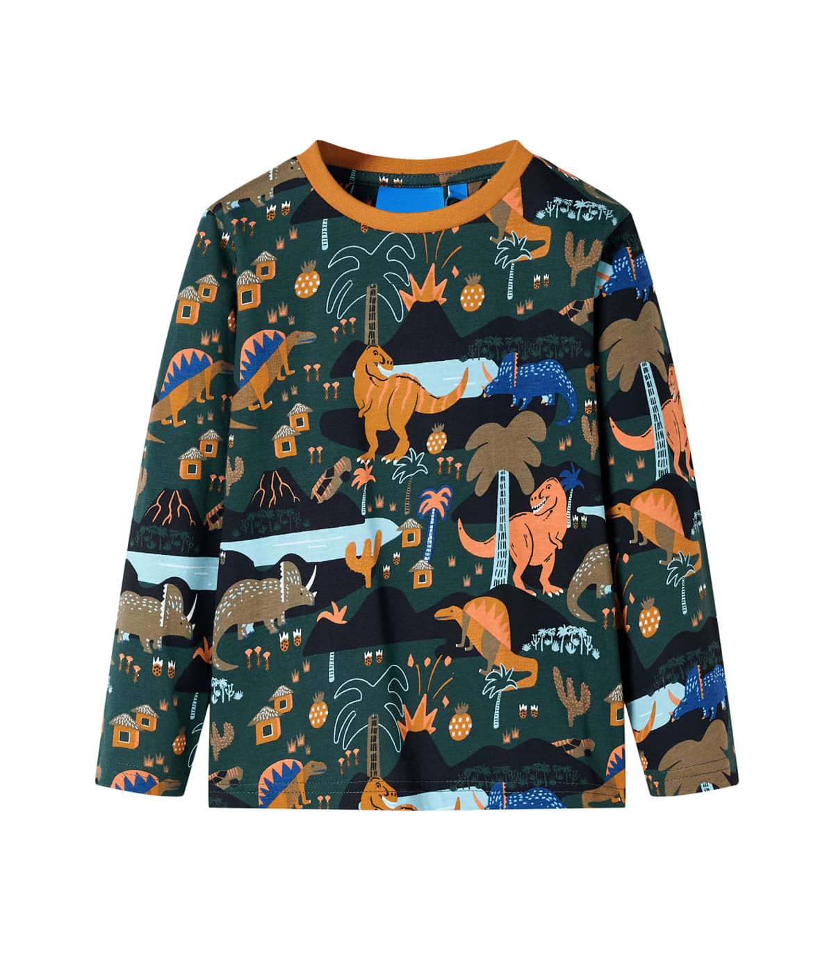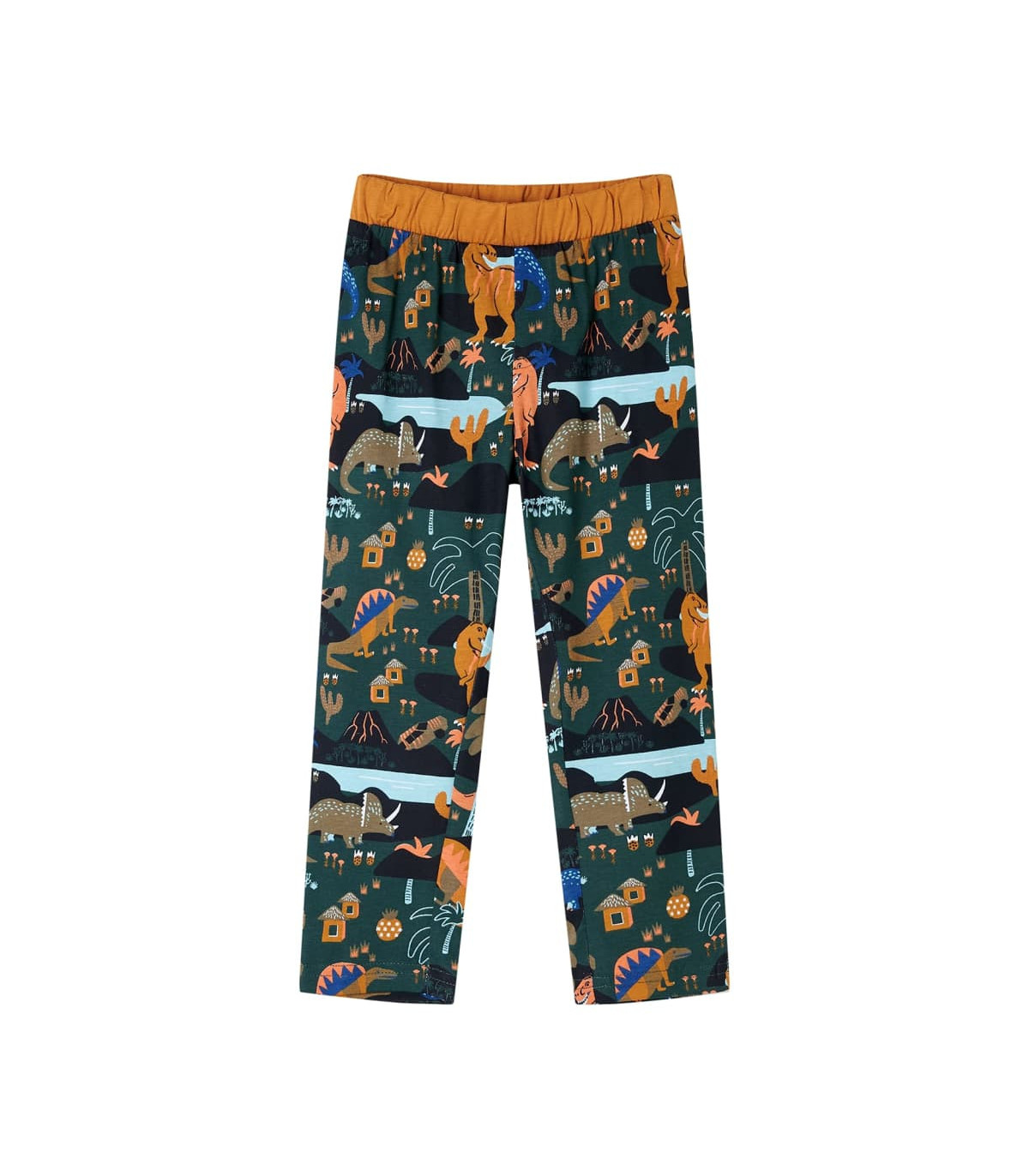 Our children's clothing line is all about affordable, high-quality, and durable everyday wear for kids aged 1.5 to 10. Our range includes jackets, sweaters, shirts, and many more, with a variety in style, size, and colour. Following the high-quality standard in the market, we are using high-grade materials and advanced manufacturing techniques. This pair of kids' pyjamas with long sleeves has a ribbed round neckline, an elasticated waistband, and a regular fit. The children's pyjamas feature dinosaurs, hills, plants and houses all over. The kids' loungewear is made of 100% cotton for comfort and breathability. Good to know: The size chart in the picture provides measurements for kids aged 1.5 to 10, covering the height, chest, waist, and hip. You can easily find the right fit for your child.