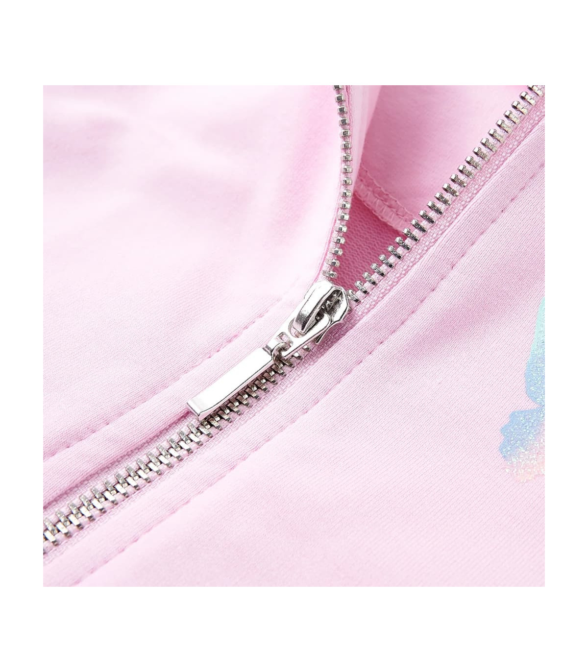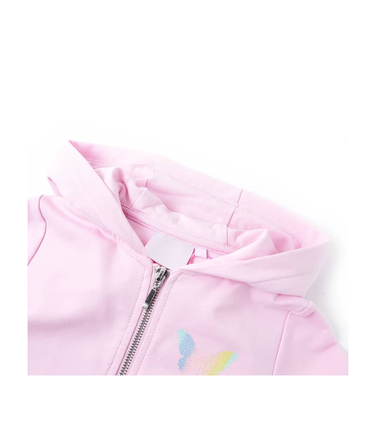 Our children's clothing line is all about affordable, high-quality, and durable everyday wear for kids aged 1.5 to 10. Our range includes jackets, sweaters, shirts, and many more, with a variety in style, size, and colour. Following the high-quality standard in the market, we are using high-grade materials and advanced manufacturing techniques. This kids' hooded sweatshirt has long sleeves, two front pockets, and closes with a zip. The kids' hoodie features a multicoloured butterfly. The children's hooded sweatshirt is made from soft material that includes 95% cotton and 5% elastane for comfort and breathability. Good to know: This size chart in the picture provides measurements for kids aged 1.5 to 10, covering the height, chest, waist, and hip. You can easily find the right fit for your child.
