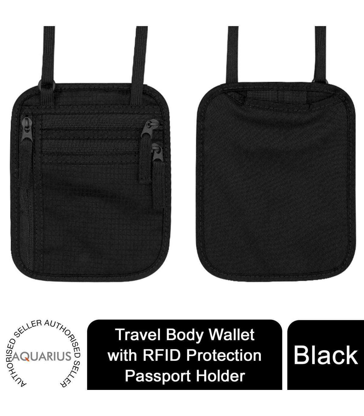 Travel Body Wallet with RFID Protection Passport Holder, Black