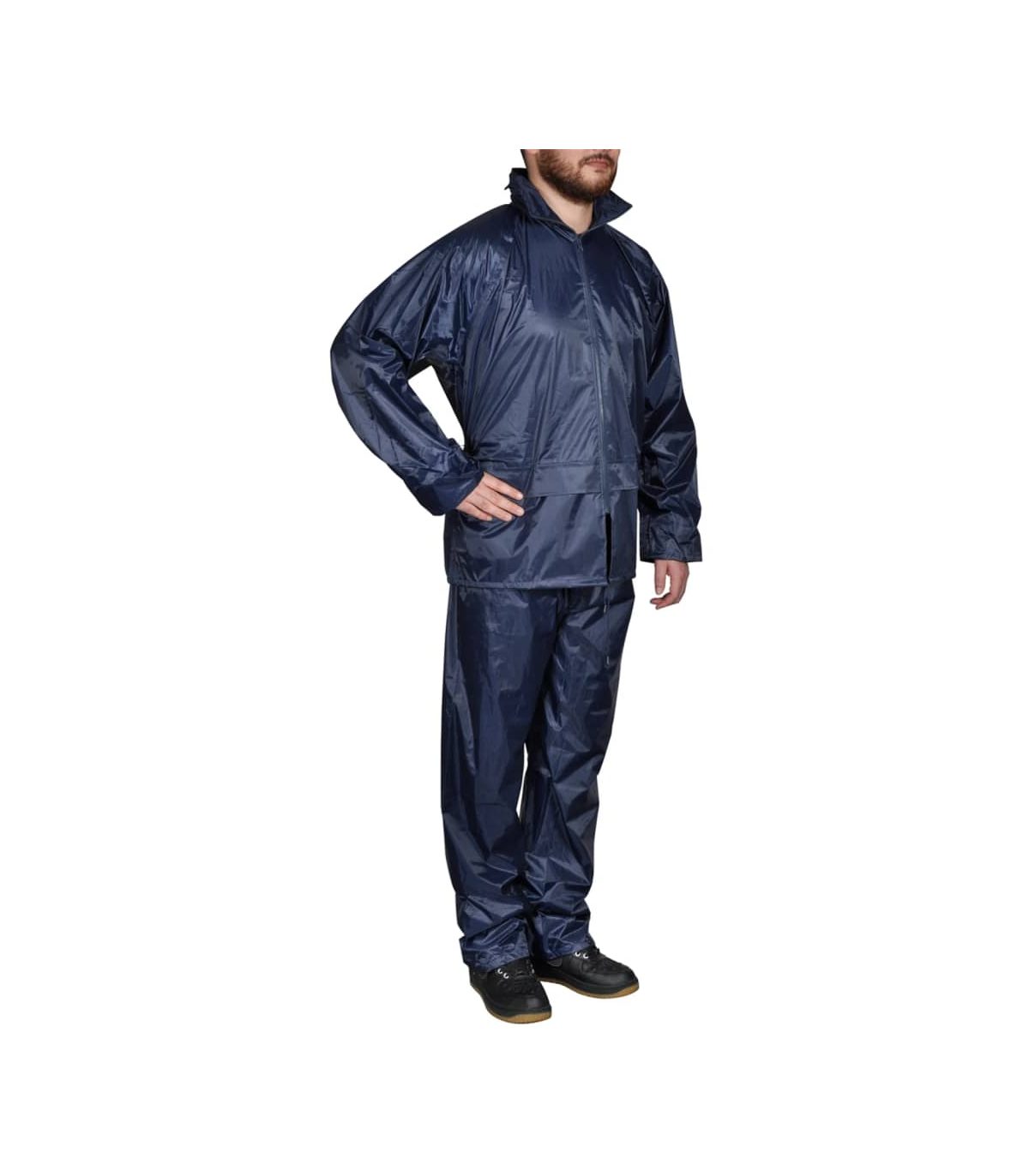 This lightweight yet durable 2-piece rain suit will be ideal for all outdoor activities, such as hiking, walking, fishing, gardening, and building jobs. It features 2 big pockets with flaps on the jacket and 2 side slant pockets so you can reach the pants you are wearing under the rain pant. There is also a hidden hood in the jacket collar. The elastic sleeve cuffs and waistband will fit different sizes to ensure a comfortable fit. Made from high quality pvc coated polyester, this rain suit has is waterproof and built to last. Please check the size carefully before making a purchase.