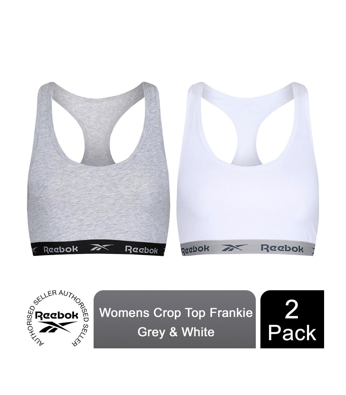 Reebok Women's 2 Multi-Pack Frankie Crop Top, White & Grey, X-Small
