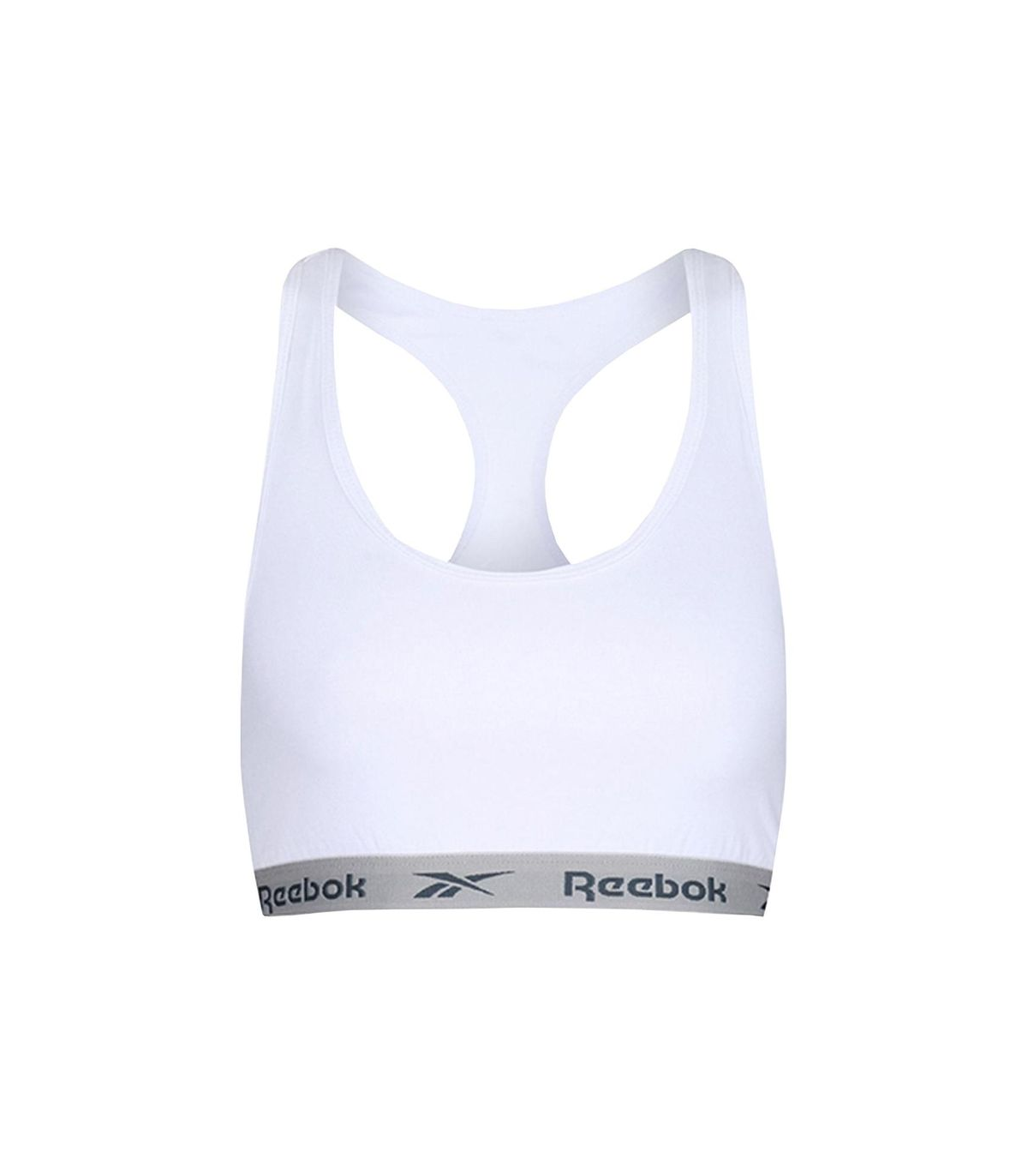 Warm weather calls for a relaxed style. This racer-back style women's Reebok Frankie crop top is made from comfortable cotton knit with a soft underband. Breathable and stretchy, this classic ladies’ sports cropped top design is ideal for working out, dancing, or for teaming with jeans on warmer days. Bring sporty Reebok style to your layered looks. This women's crop top is made of stretchy cotton knit with a soft underband. Removable pads let you choose your level of coverage. * Soft and breathable * Elasticated fit * Stylish support * Removable pads * Tab collar style * Racerback * Ideal sports outfit Specifics: * 95% cotton / 5% elastane knit * Available size: Extra Small * Machine washable for easy care. * Elasticated underbust with Reebok branding