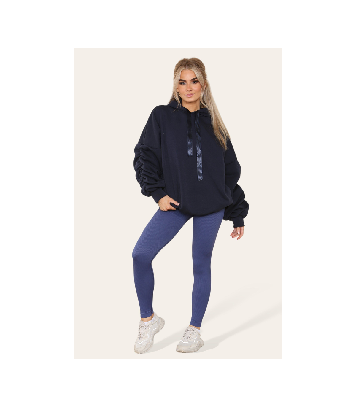 Oversized Ruched Sleeves Hoodie With Satin Ribbon