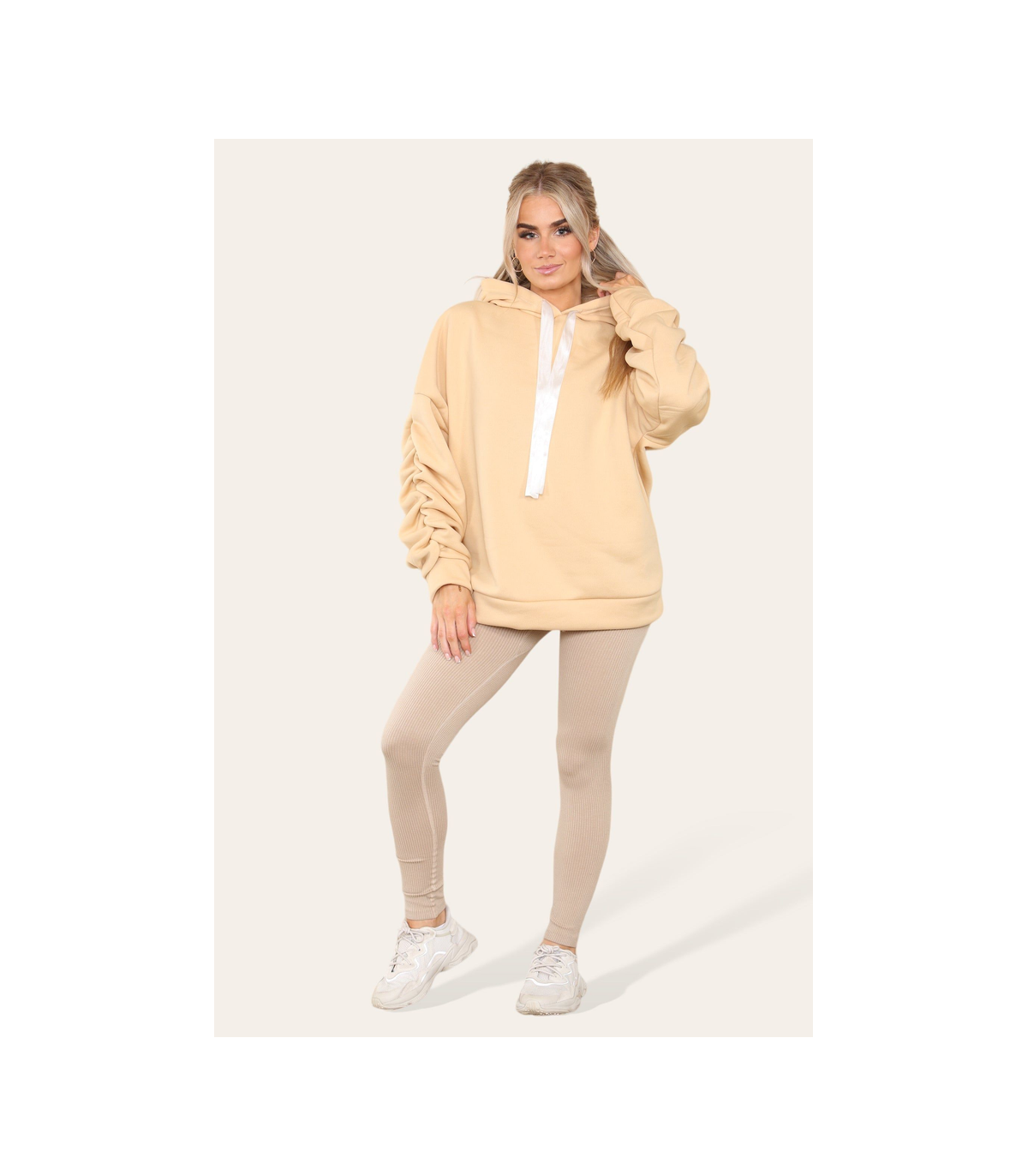 This Ladies Anna Oversized Ruched Hoody & Legging is a stylish and comfortable solution for your layering needs. Crafted with a blend of cotton and polyester, this hoody is lightweight and soft. The oversized design and drawstring cuffs make it a perfect fit for any size, and the ruched hood gives it a unique aesthetic.