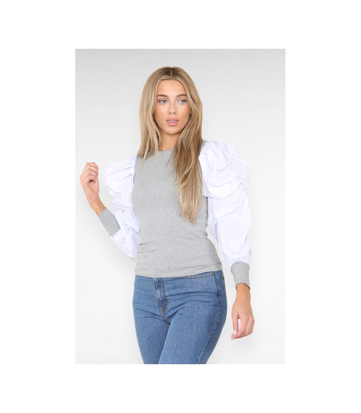 Oversized Puff Sleeves Ribbed Top