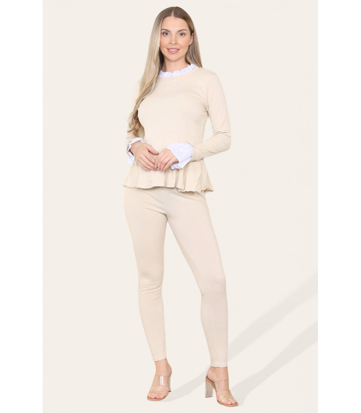 Peplum Frill Neck Suit Pleated Lounge Wear Set
