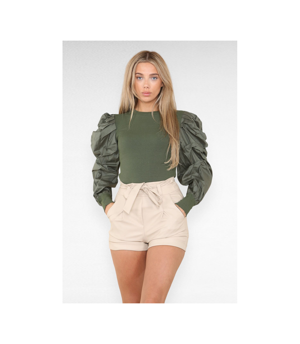 PU Faux Leather Belted Wet Look Shorts With Strap