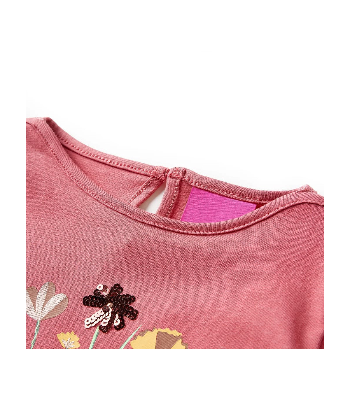 Our children's clothing line is all about affordable, high-quality, and durable everyday wear for kids aged 1,5 to 10. Our range includes jackets, sweaters, shirts, and many more, with a variety in style, size, and colour. Following the high-quality standard in the market, we are using high-grade materials and advanced manufacturing techniques. This kids' t-shirt has long sleeves, a round neckline, and a keyhole opening with a button at the back of the neck. This old pink t-shirt features beautiful wild flowers. The children's long sleeve t-shirt is made from soft material with 95% cotton and 5% elastane for extra comfort and breathability. Good to know: The size chart in the picture provides measurements for kids aged 1,5 to 10, covering the height, chest, waist, and hip. You can easily find the right fit for your child.