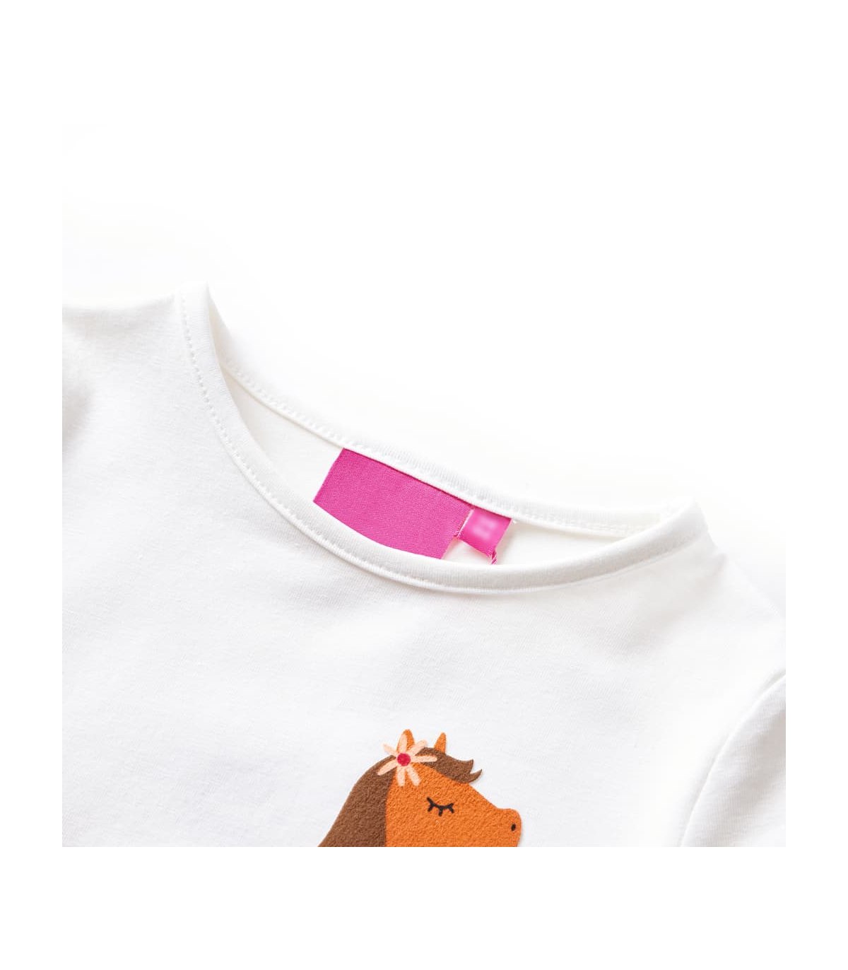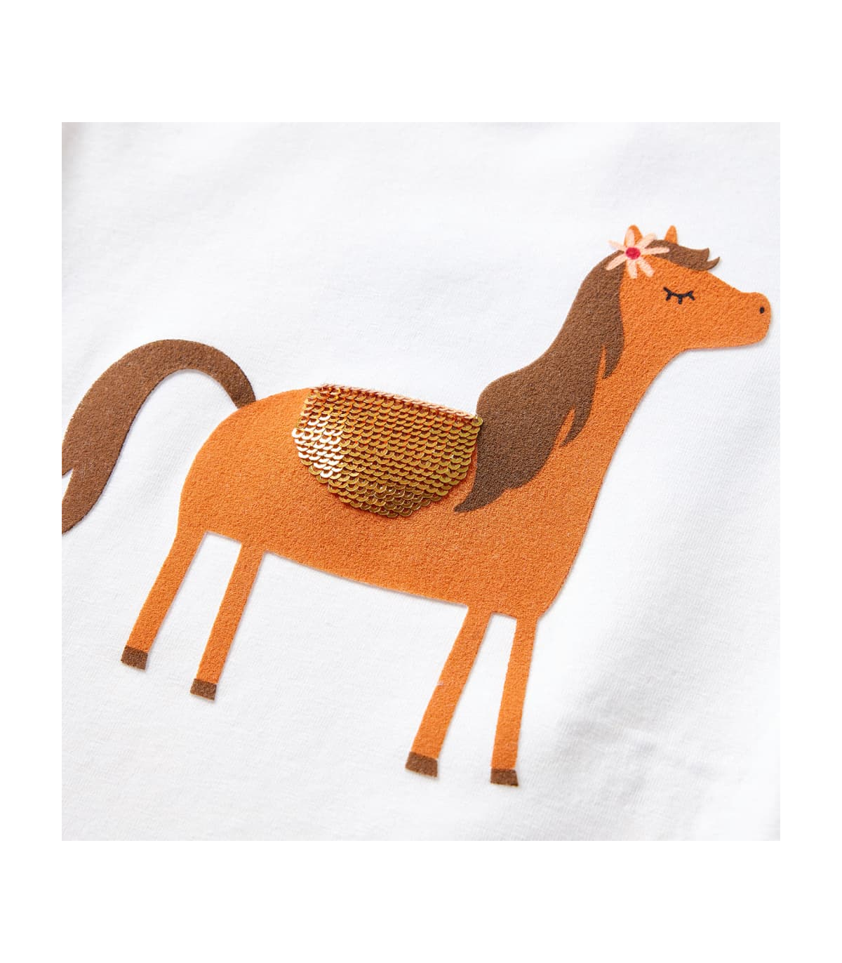 Our children's clothing line is all about affordable, high-quality, and durable everyday wear for kids aged 1,5 to 10. Our range includes jackets, sweaters, shirts, and many more, with a variety in style, size, and colour. Following the high-quality standard in the market, we are using high-grade materials and advanced manufacturing techniques. This kids' t-shirt has long sleeves, a round neckline, and a straight model. This navy blue t-shirt features a lovely pony. The children's long sleeve t-shirt is made from soft material with 95% cotton and 5% elastane for extra comfort and breathability. Good to know: The size chart in the picture provides measurements for kids aged 1,5 to 10, covering the height, chest, waist, and hip. You can easily find the right fit for your child.