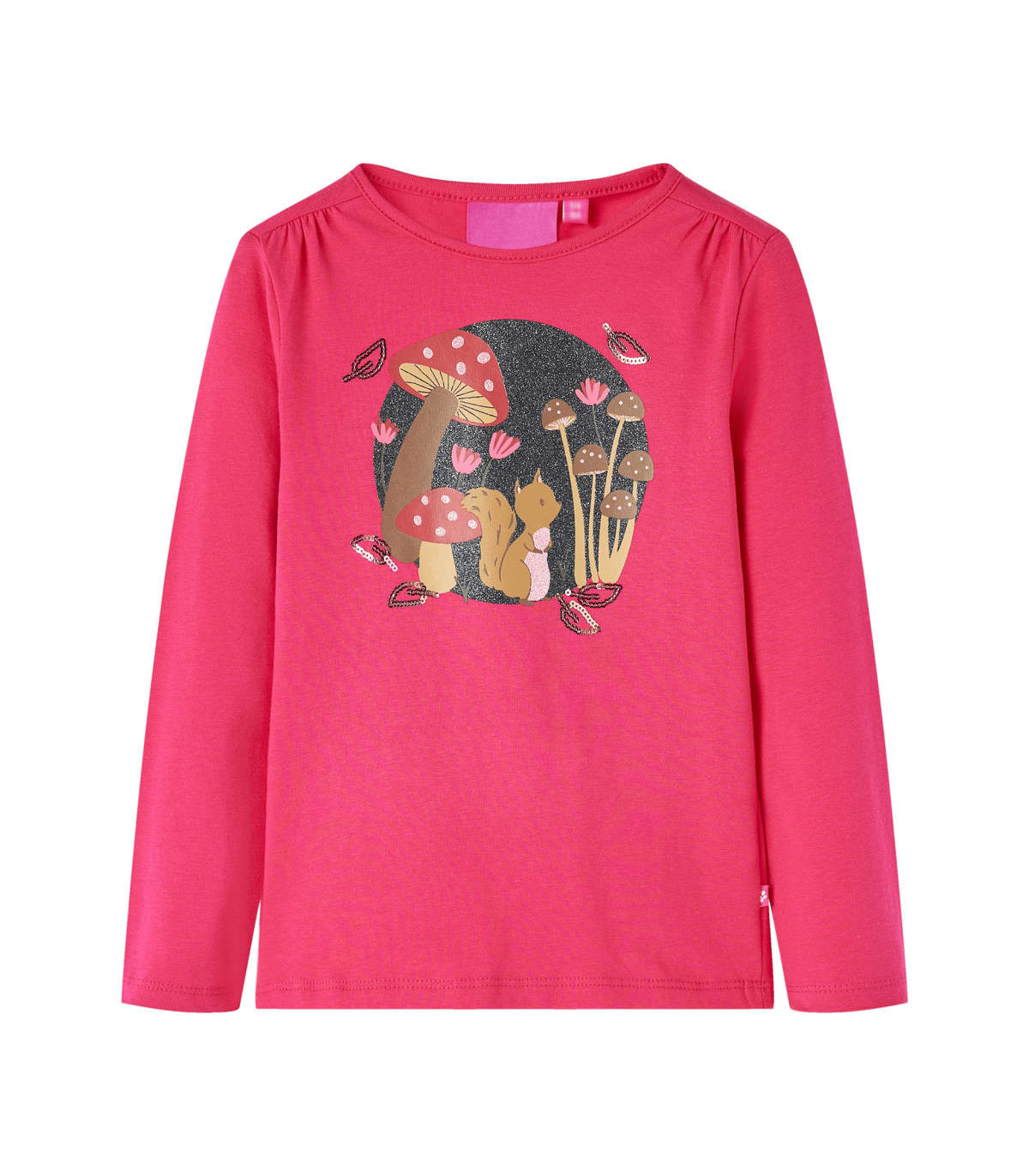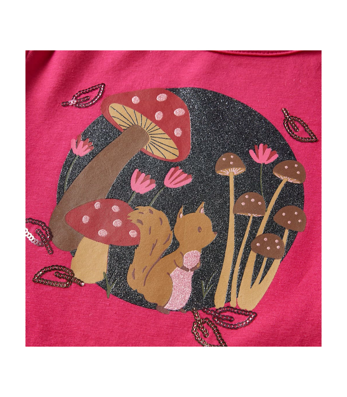 - Design: Squirrel, mushrooms, flowers, and sequin leaves