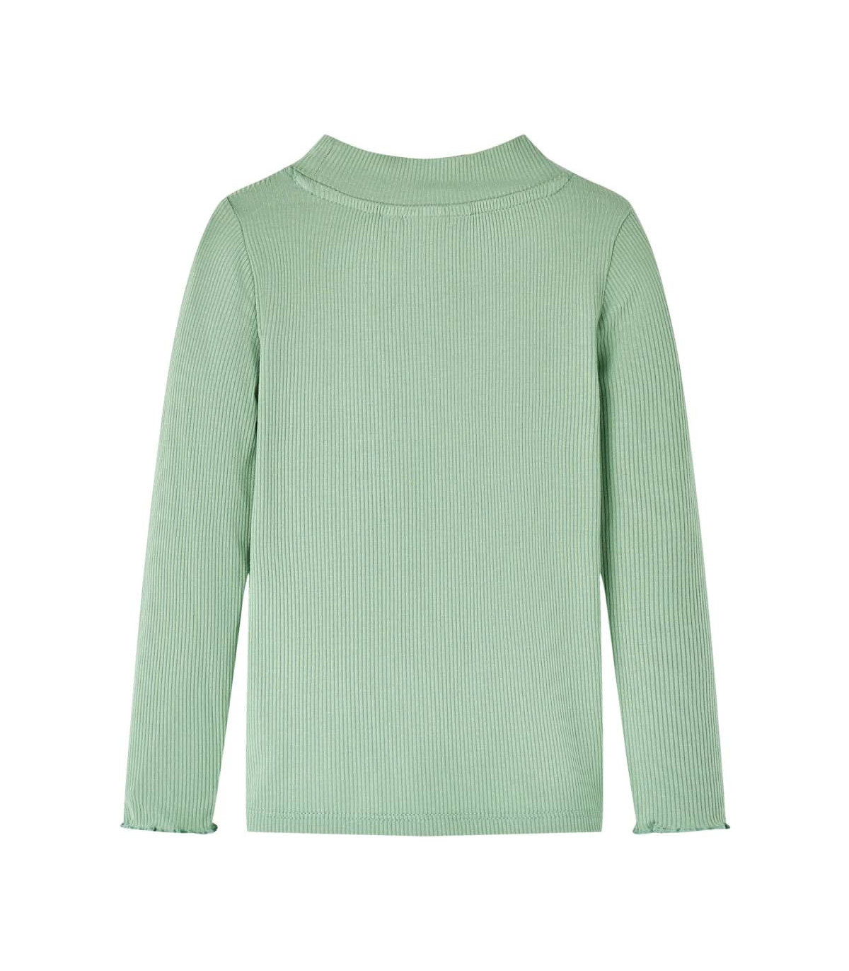 Our children's clothing line is all about affordable, high-quality, and durable everyday wear for kids aged 1,5 to 10. Our range includes jackets, sweaters, shirts, and many more, with a variety in style, size, and colour. Following the high-quality standard in the market, we are using high-grade materials and advanced manufacturing techniques. This kids' T-shirt has long sleeves, a mock turtleneck, and a slim fit. This dark mint T-shirt features lettuce-edge trim at the cuffs. The children's long sleeve T-shirt is made from soft material with 95% cotton and 5% elastane, providing extra comfort and stretch. Good to know: The size chart in the picture provides measurements for kids aged 1,5 to 10, covering the height, chest, waist, and hip. You can easily find the right fit for your child.