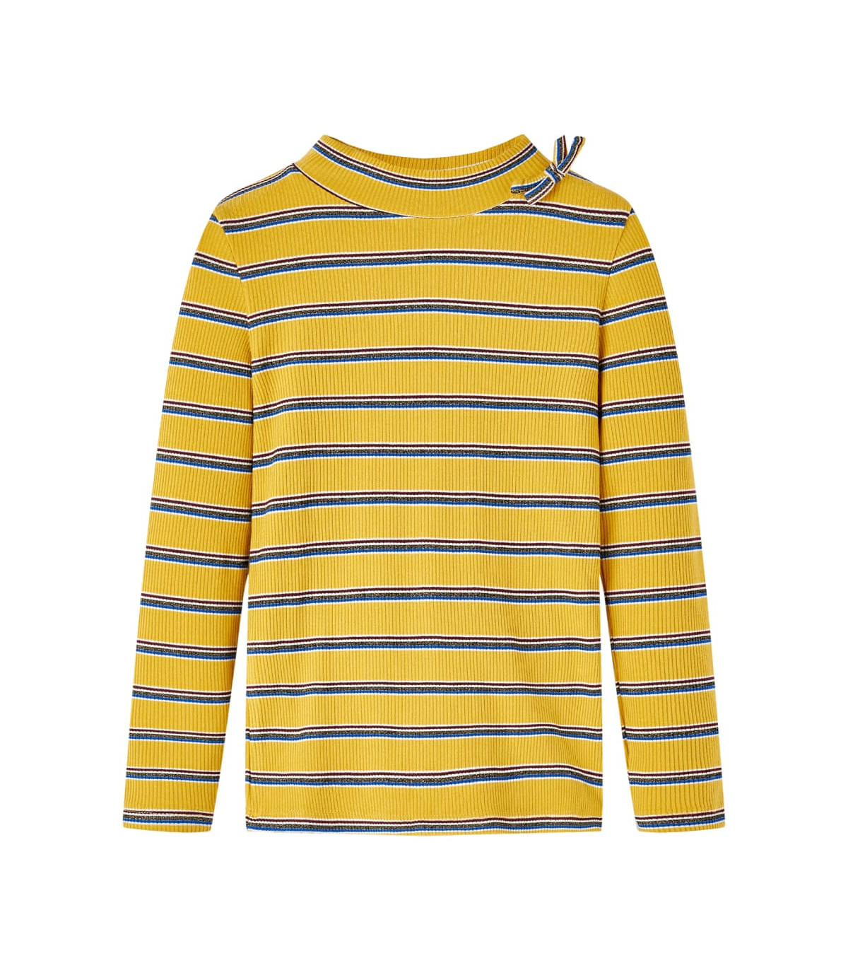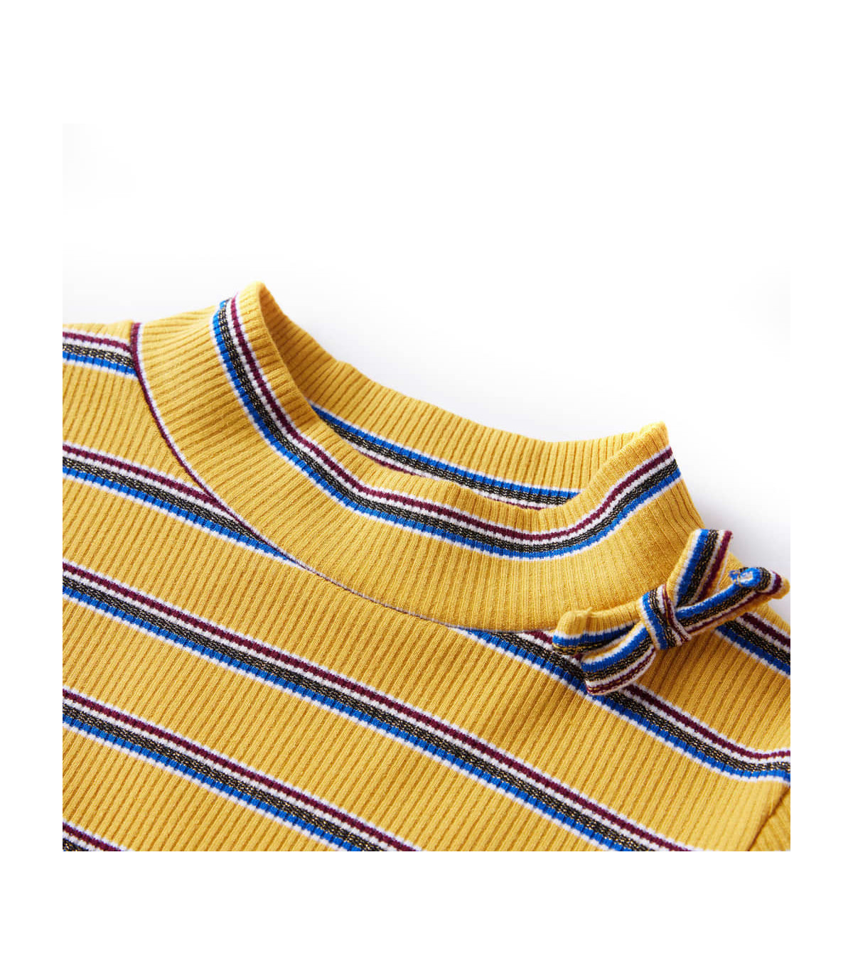 Our children's clothing line is all about affordable, high-quality, and durable everyday wear for kids aged 1,5 to 10. Our range includes jackets, sweaters, shirts, and many more, with a variety in style, size, and colour. Following the high-quality standard in the market, we are using high-grade materials and advanced manufacturing techniques. This kids' t-shirt in rib-knit has long sleeves, a half turtleneck, and a straight model. This ochre t-shirt features a small bow on the neckline. The children's long sleeve t-shirt is made from soft material with 80% rayon, 15% polyester and 5% elastane for extra comfort and breathability. Good to know: The size chart in the picture provides measurements for kids aged 1,5 to 10, covering the height, chest, waist, and hip. You can easily find the right fit for your child.