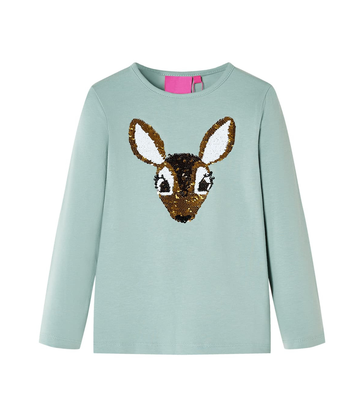 Our children's clothing line is all about affordable, high-quality, and durable everyday wear for kids aged 1.5 to 10. Our range includes jackets, sweaters, shirts, and many more, with a variety in style, size, and colour. Following the high-quality standard in the market, we are using high-grade materials and advanced manufacturing techniques. This kids' t-shirt has long sleeves, a round neckline, and a regular model. A deer motif, embroidered with reversible sequins, brings a touch of magic to the front. The children's long sleeve t-shirt is made from soft material with 95% cotton and 5% elastane for extra comfort and breathability. Good to know: The size chart in the picture provides measurements for kids aged 1.5 to 10, covering the height, chest, waist, and hip. You can easily find the right fit for your child.